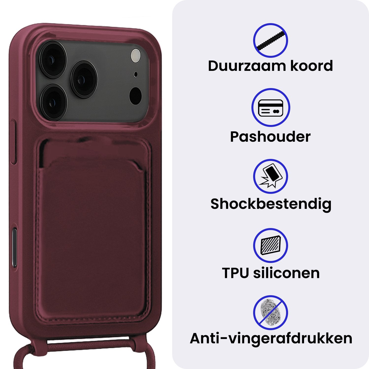 iPhone 17 Pro Hoesje Met Telefoonkoord en Pasjeshouder Siliconen - Aubergine