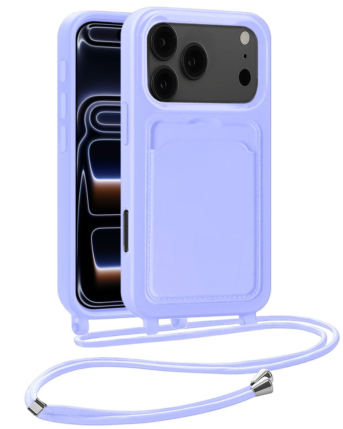 iPhone 17 Pro Hoesje Met Telefoonkoord en Pasjeshouder Siliconen - Lila