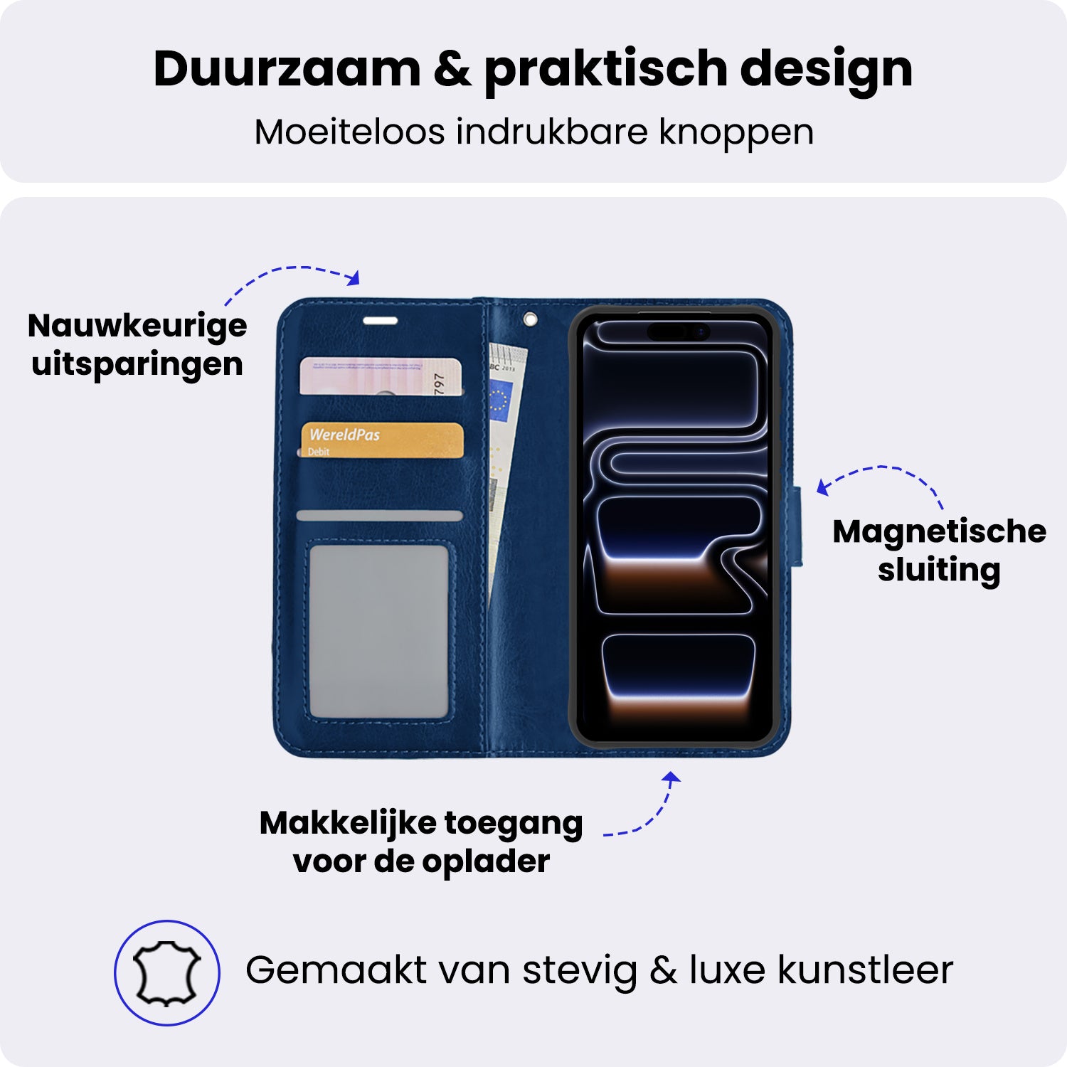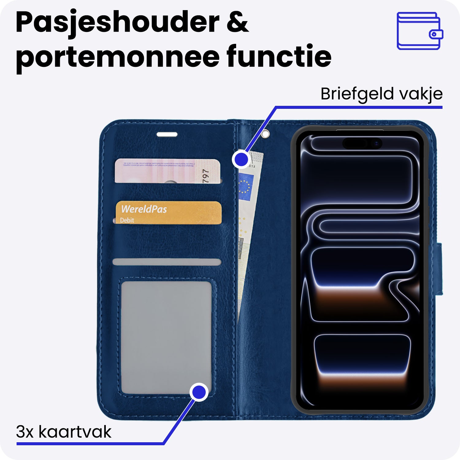 iPhone 17 Pro Max Hoesje Bookcase Cover met Kaarthouder - Donkerblauw
