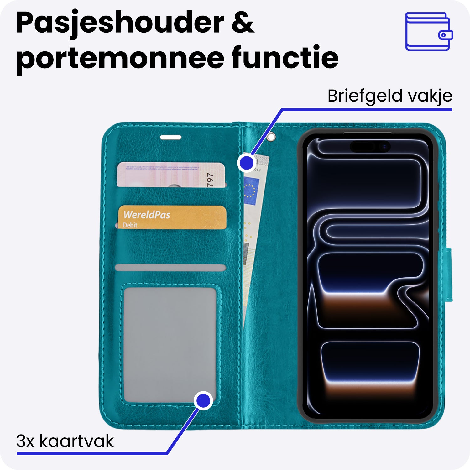 iPhone 17 Pro Max Hoesje Bookcase Cover met Kaarthouder - Turquoise