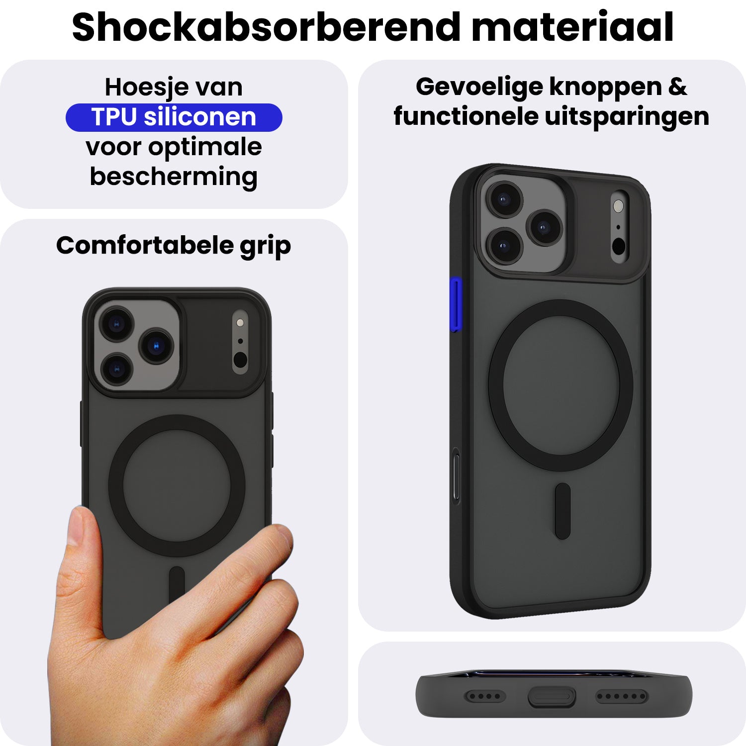 Maak je ervaring compleet met dit krachtige en praktische shockproof MagSafe hoesje voor de iPhone 17 Pro Max. **Bestel nu en geniet van de perfecte balans tussen bescherming, stijl en functionaliteit!**