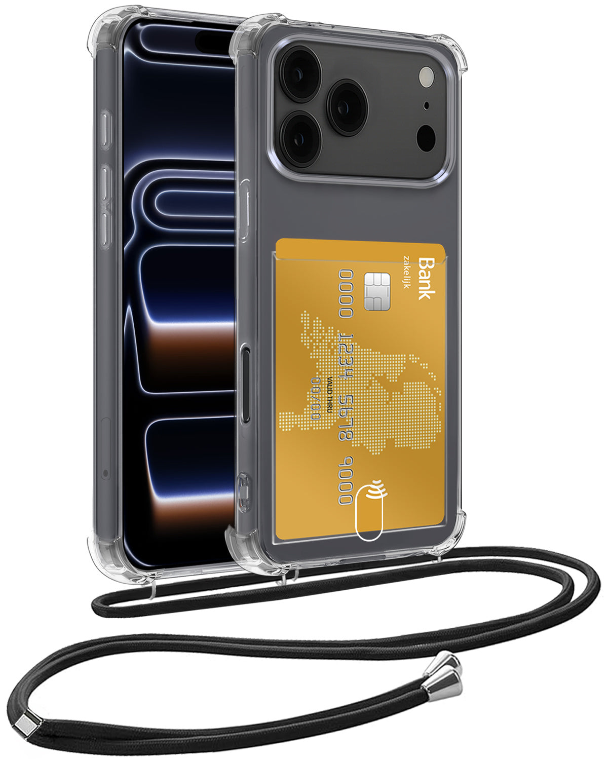 iPhone 17 Pro Max Hoesje Kaarthouder met Koord Backcover Shockproof - Transparant