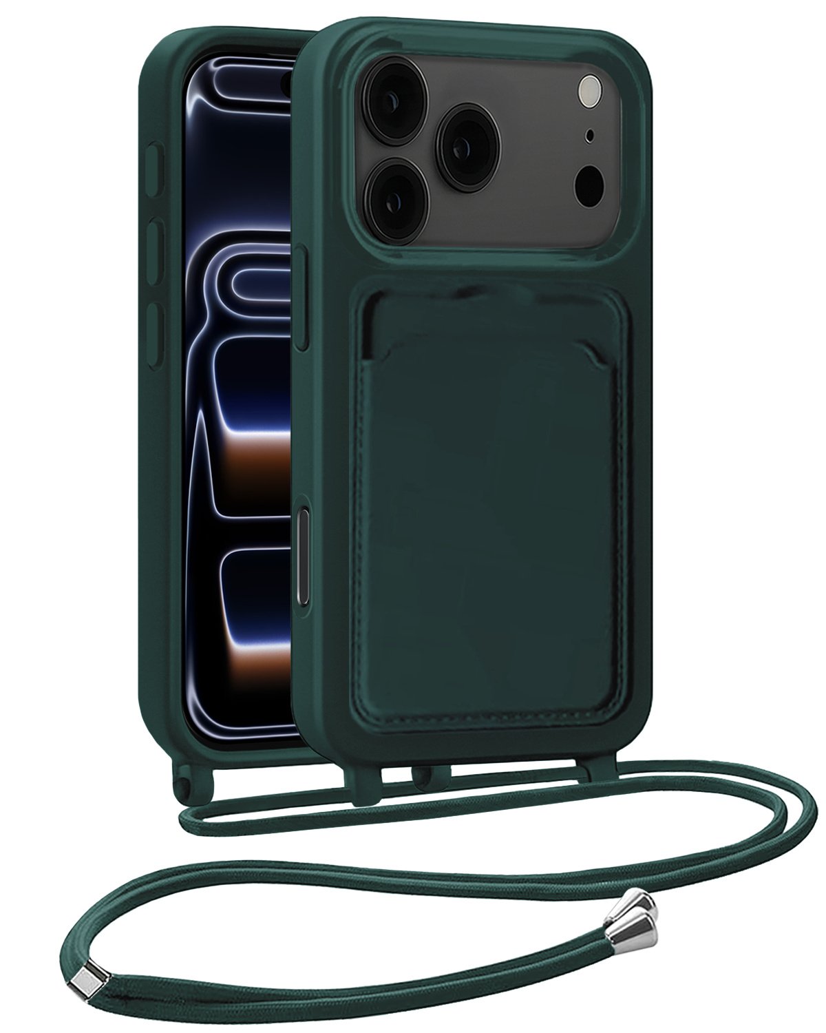 iPhone 17 Pro Max Hoesje Met Telefoonkoord en Pasjeshouder Siliconen - Donkergroen