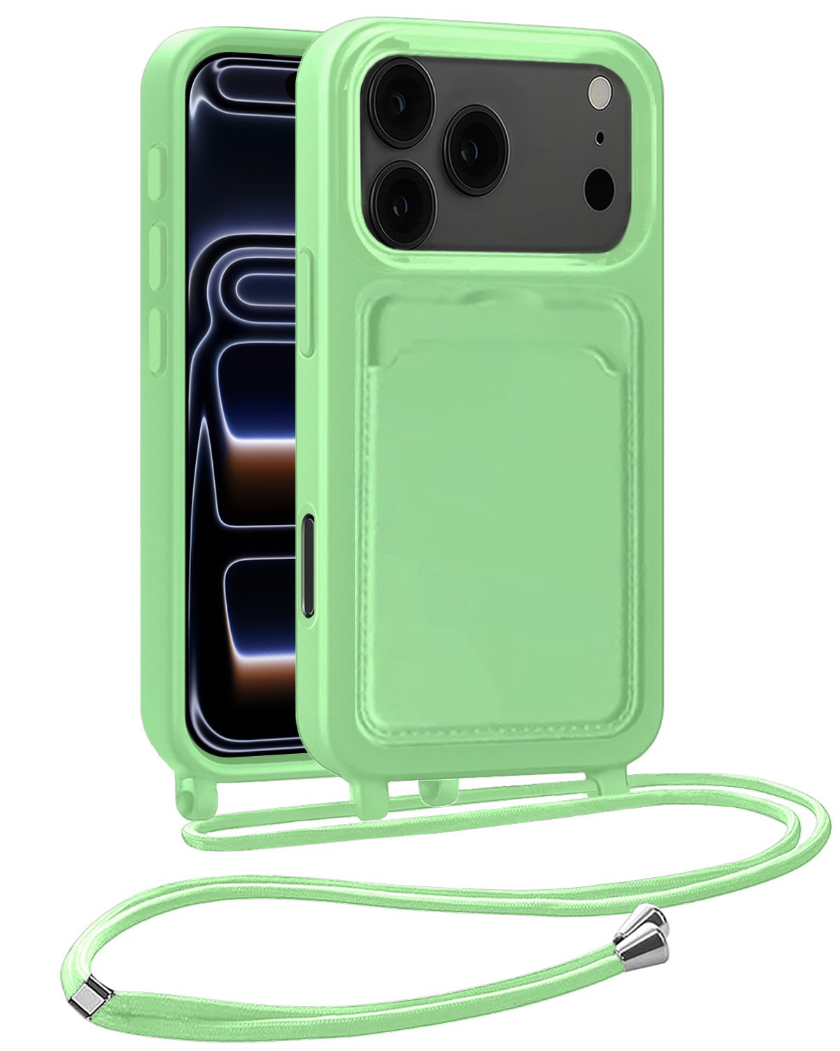 iPhone 17 Pro Max Hoesje Met Telefoonkoord en Pasjeshouder Siliconen - Groen