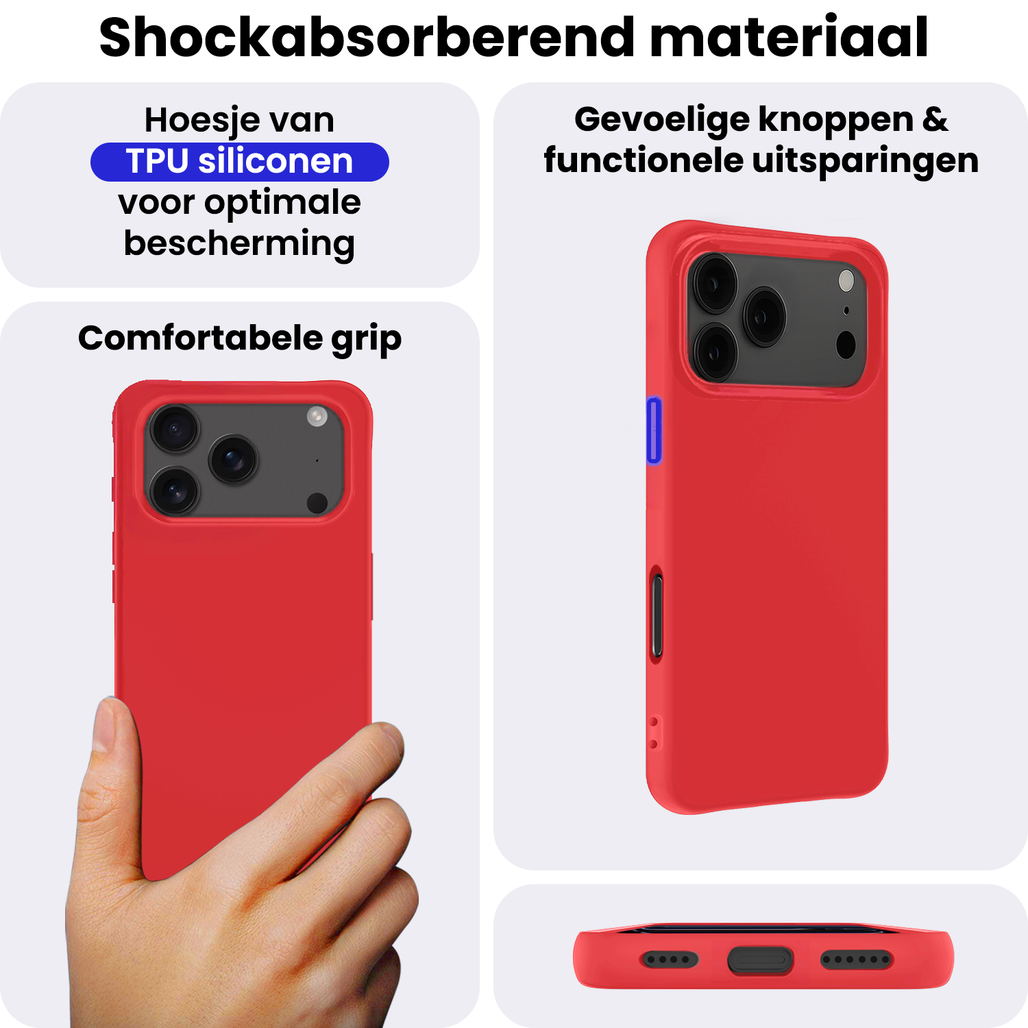 iPhone 17 Pro Max Hoesje Siliconen Backcover Lichtgewicht - Rood