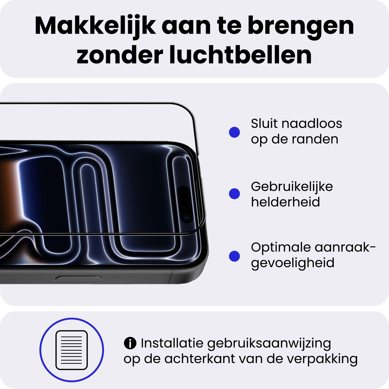 In tegenstelling tot standaard screenprotectors, biedt deze fullscreen variant volledige dekking tot aan de randen. De zwarte randen zorgen ervoor dat de protector perfect aansluit op het design van je iPhone 17 Pro, zonder storende randen of zichtbare lijmresten.