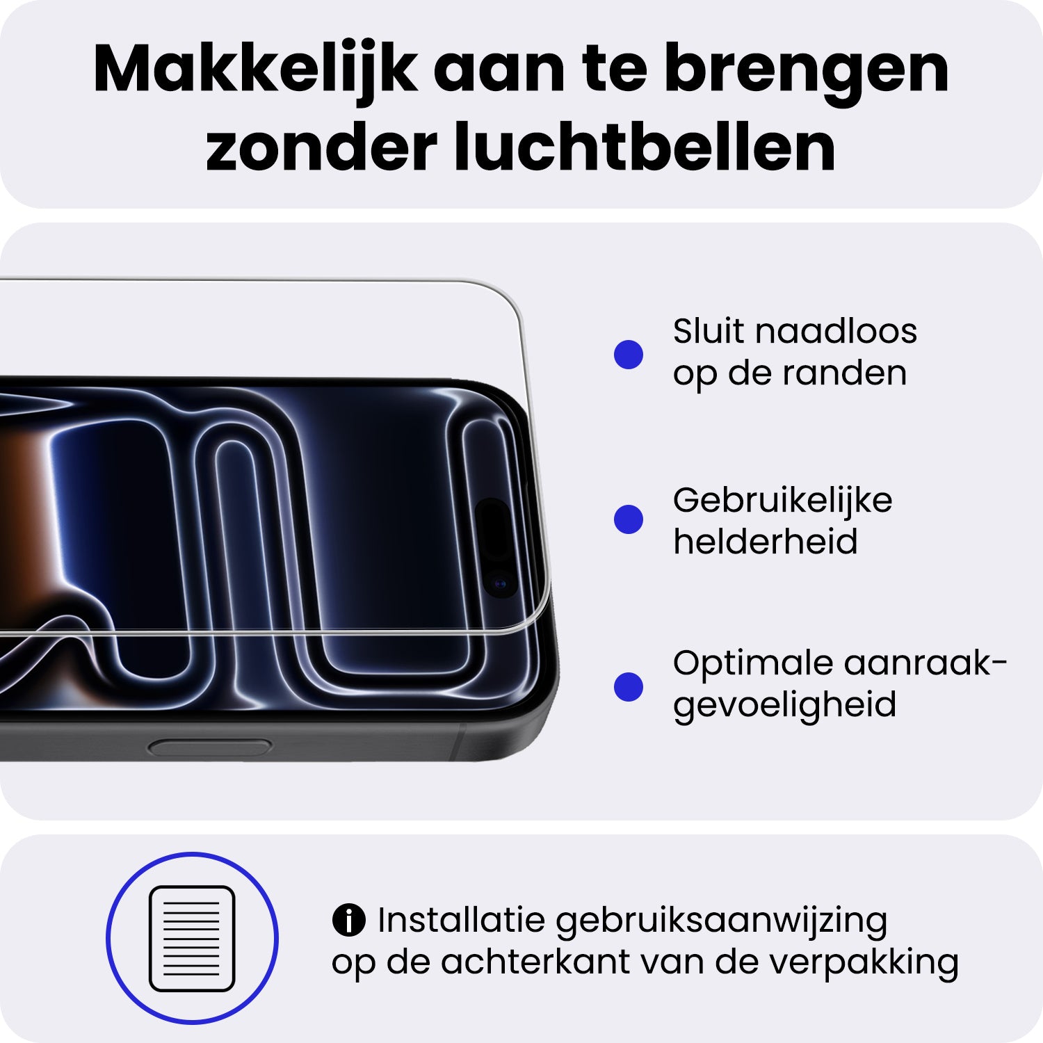 Deze screenprotector bedekt het hele scherm van je iPhone 17 Pro, inclusief de notch. Dit zorgt voor een premium uitstraling zonder storende uitsparingen, waardoor je toestel een strakke en moderne look behoudt.