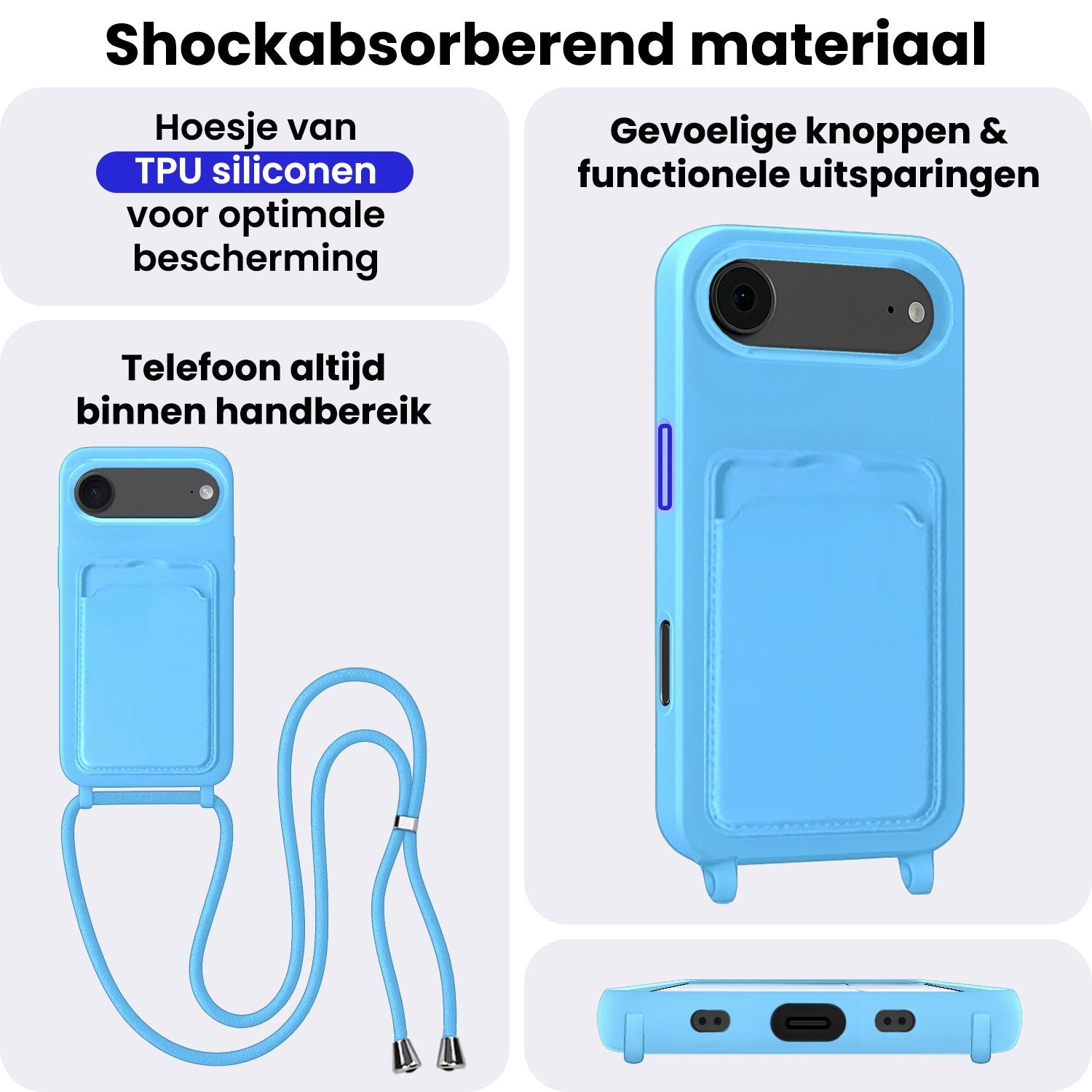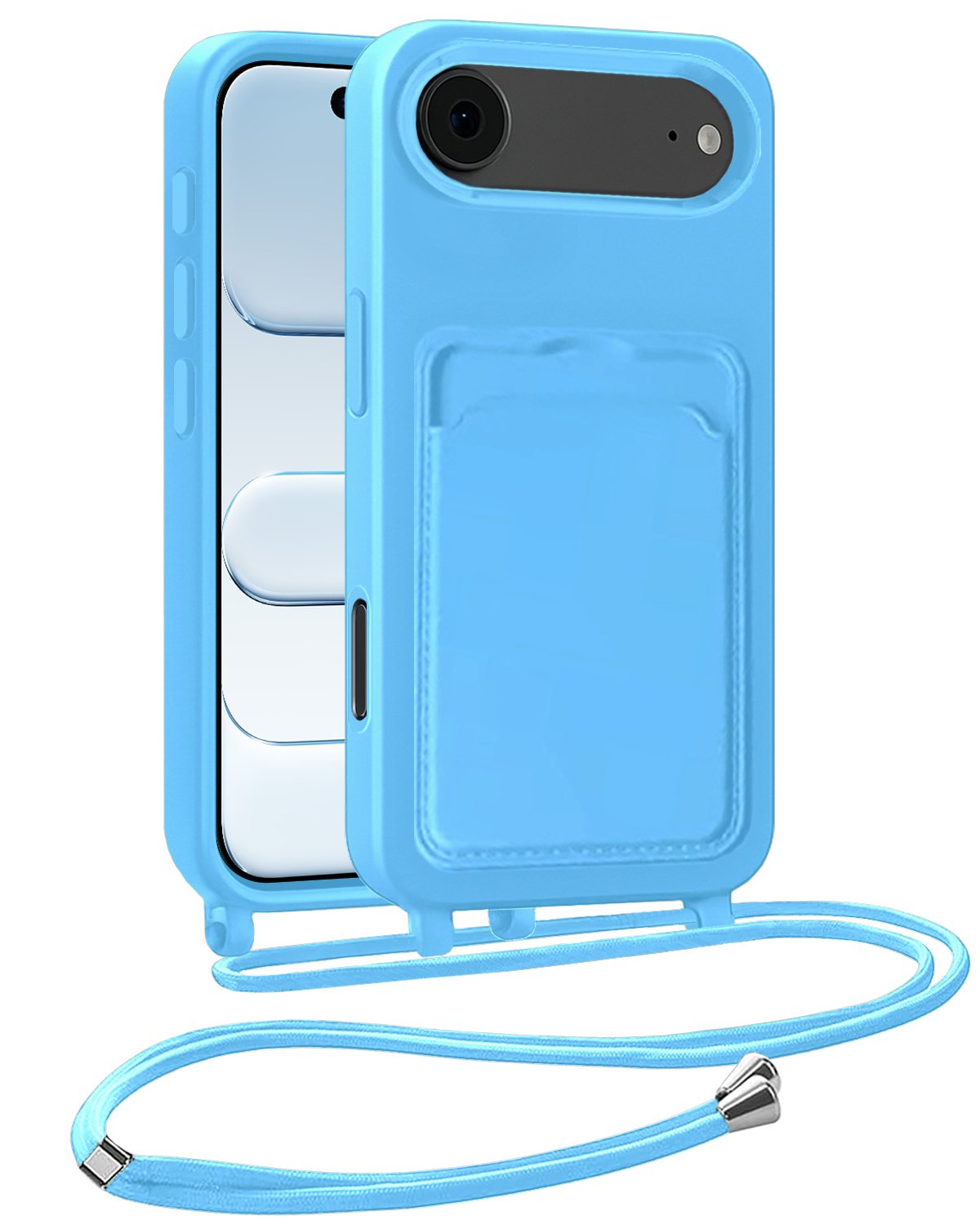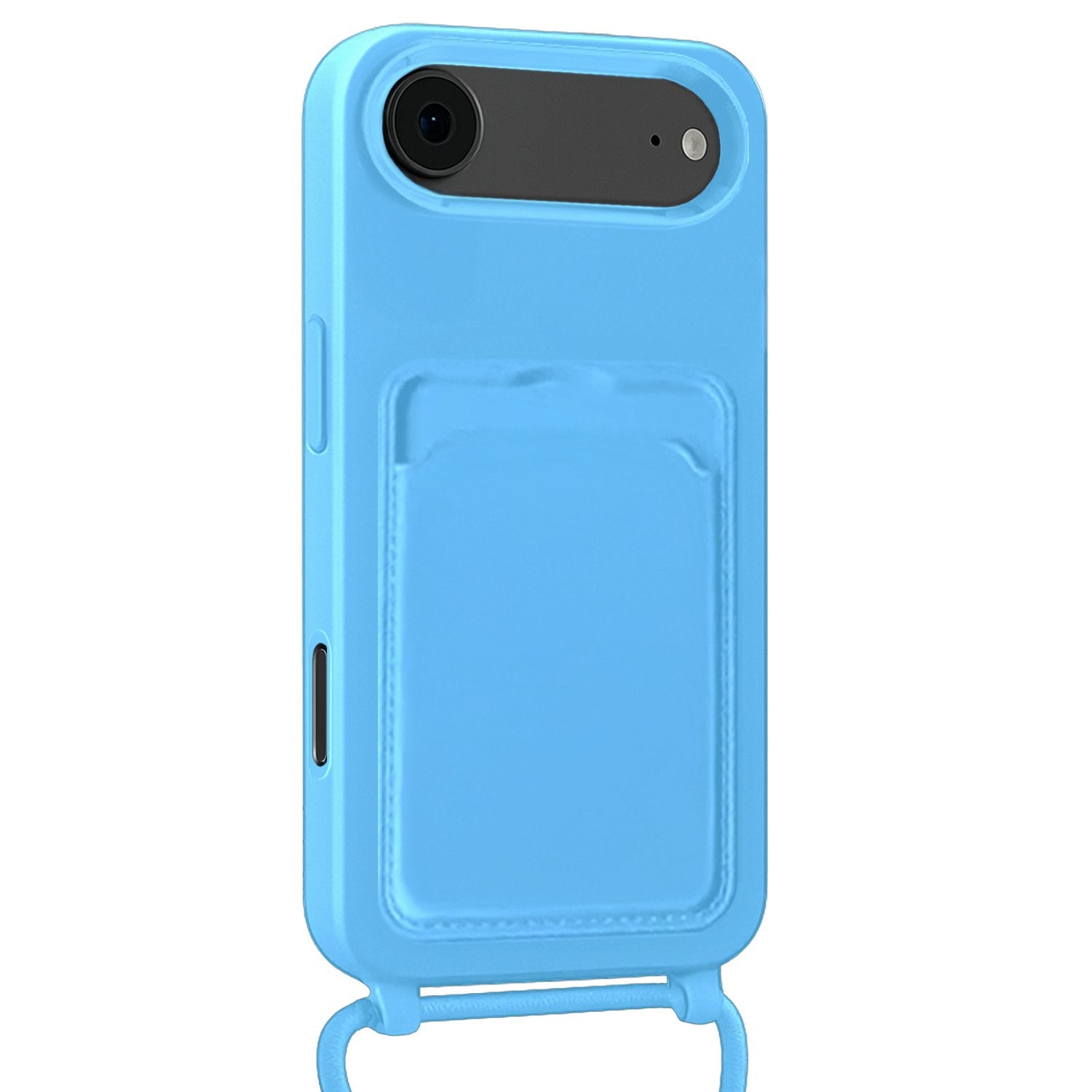 iPhone Air Hoesje Met Telefoonkoord en Pasjeshouder Siliconen - Lichtblauw