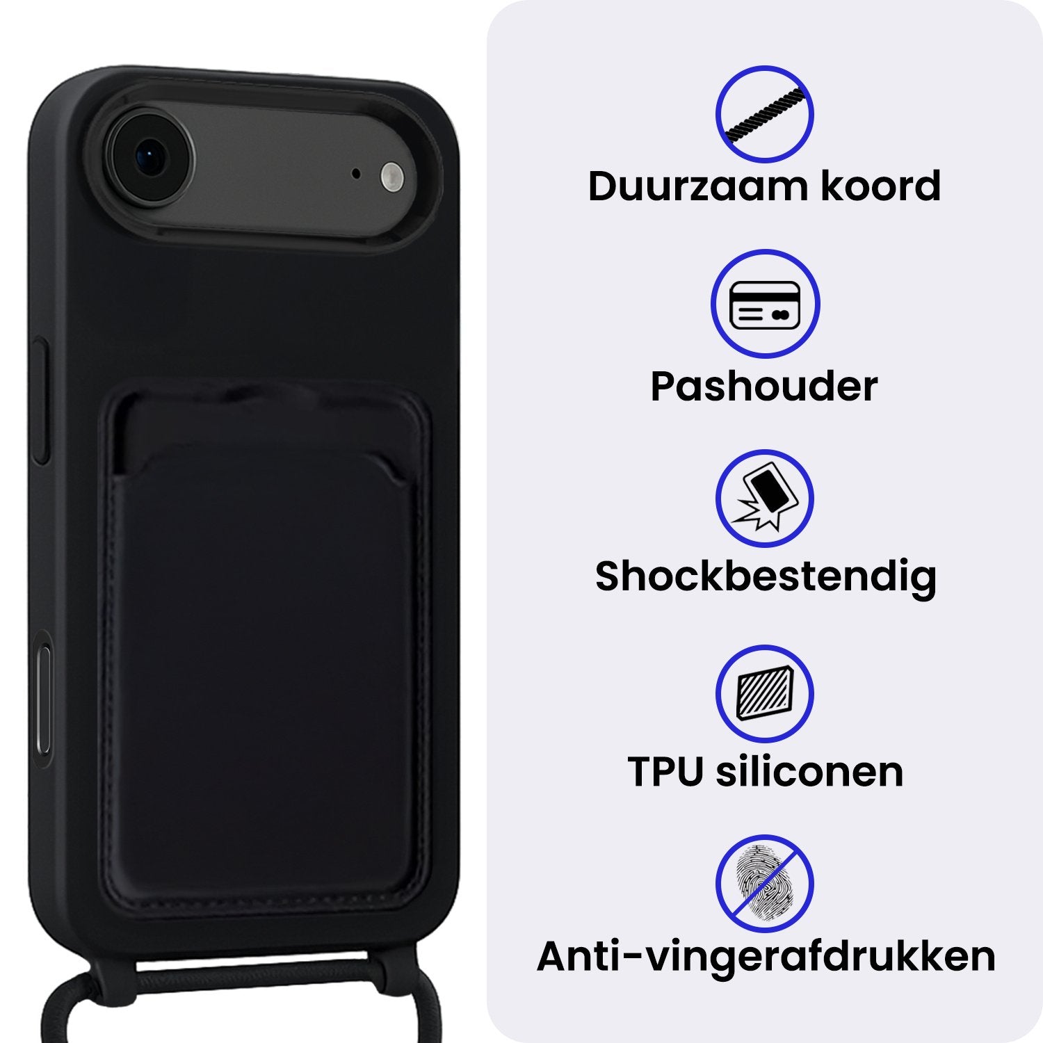 iPhone Air Hoesje Met Telefoonkoord en Pasjeshouder Siliconen - Zwart