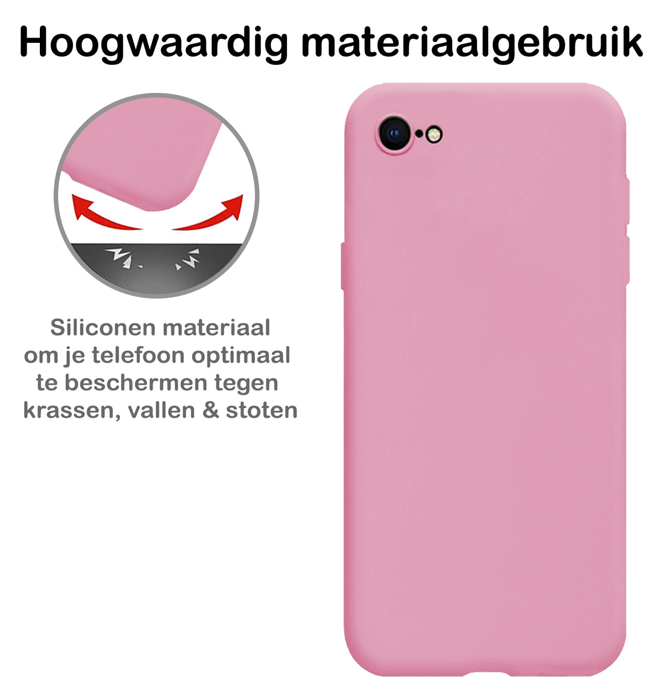 Dit siliconen hoesje voor de iPhone SE 2020 is gemaakt van flexibel en schokabsorberend TPU-materiaal, waardoor het je toestel optimaal beschermt tegen vallen en stoten. De verhoogde randen rond het scherm en de camera voorkomen directe contactschade bij neerleggen op vlakke oppervlakken. Bovendien is het siliconen materiaal scheur- en slijtvast, wat een lange levensduur garandeert.