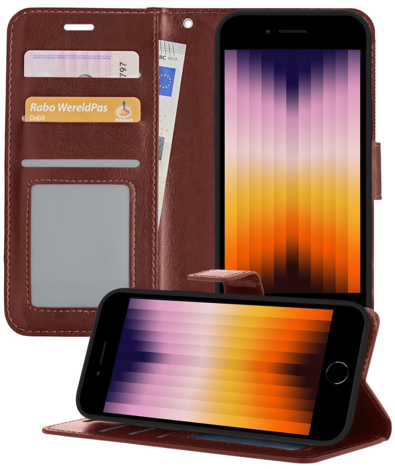 iPhone SE 2022 Hoesje Bookcase Cover met Kaarthouder - Bruin