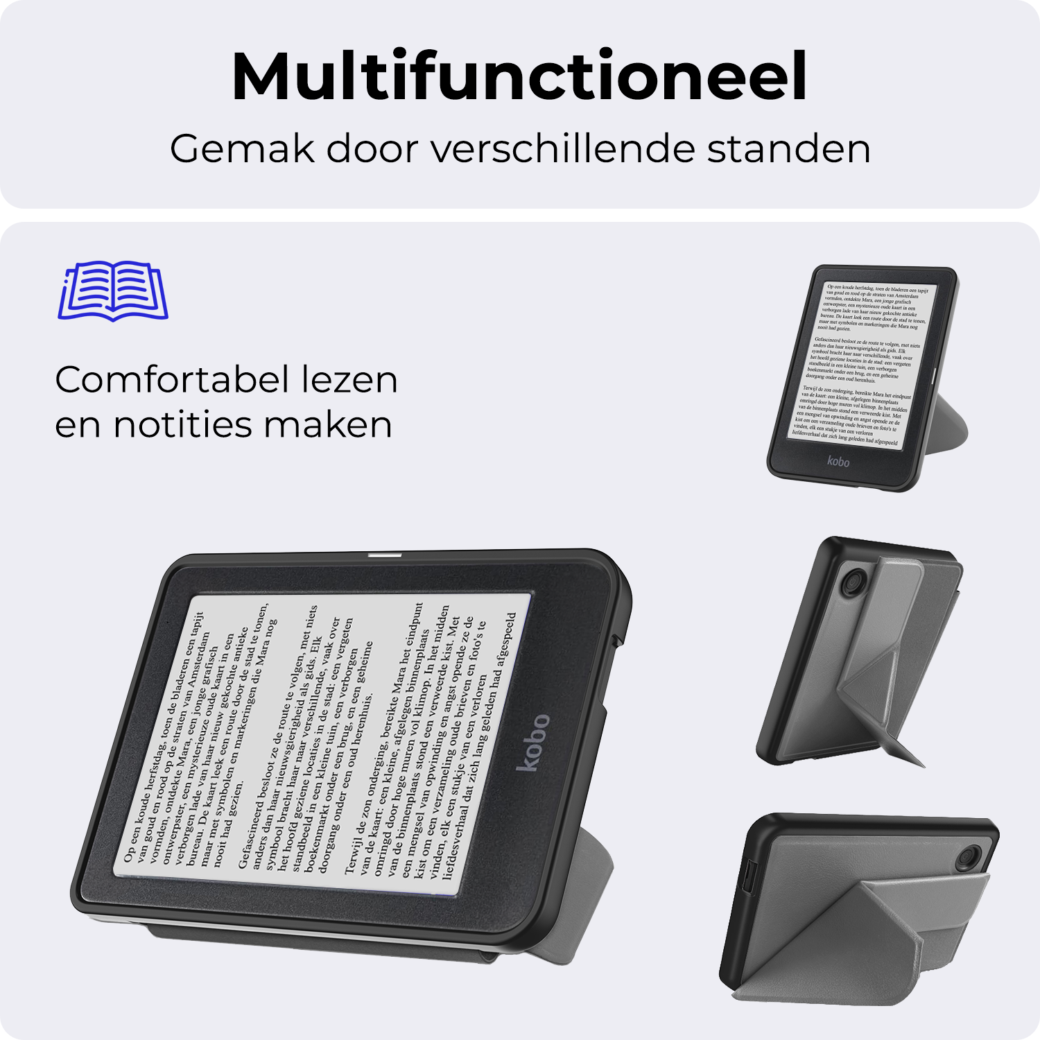 Maak je Kobo Clara BW compleet met deze trifold e-reader hoes in grijze. **Bestel nu en geniet van comfortabele bescherming en stijl!**