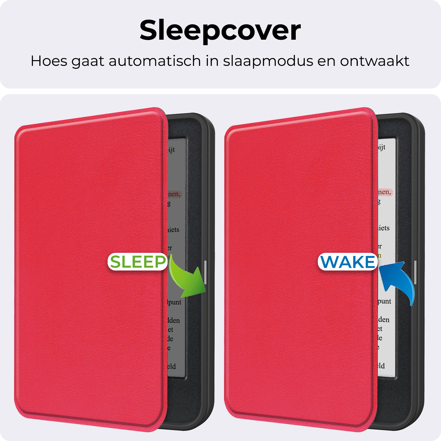 De hoes sluit stevig en beschermt je e-reader wanneer deze niet in gebruik is. Er is bewust gekozen voor een ontwerp zonder slaapfunctie, zodat je volledige controle houdt over het aan- en uitzetten van je e-reader.