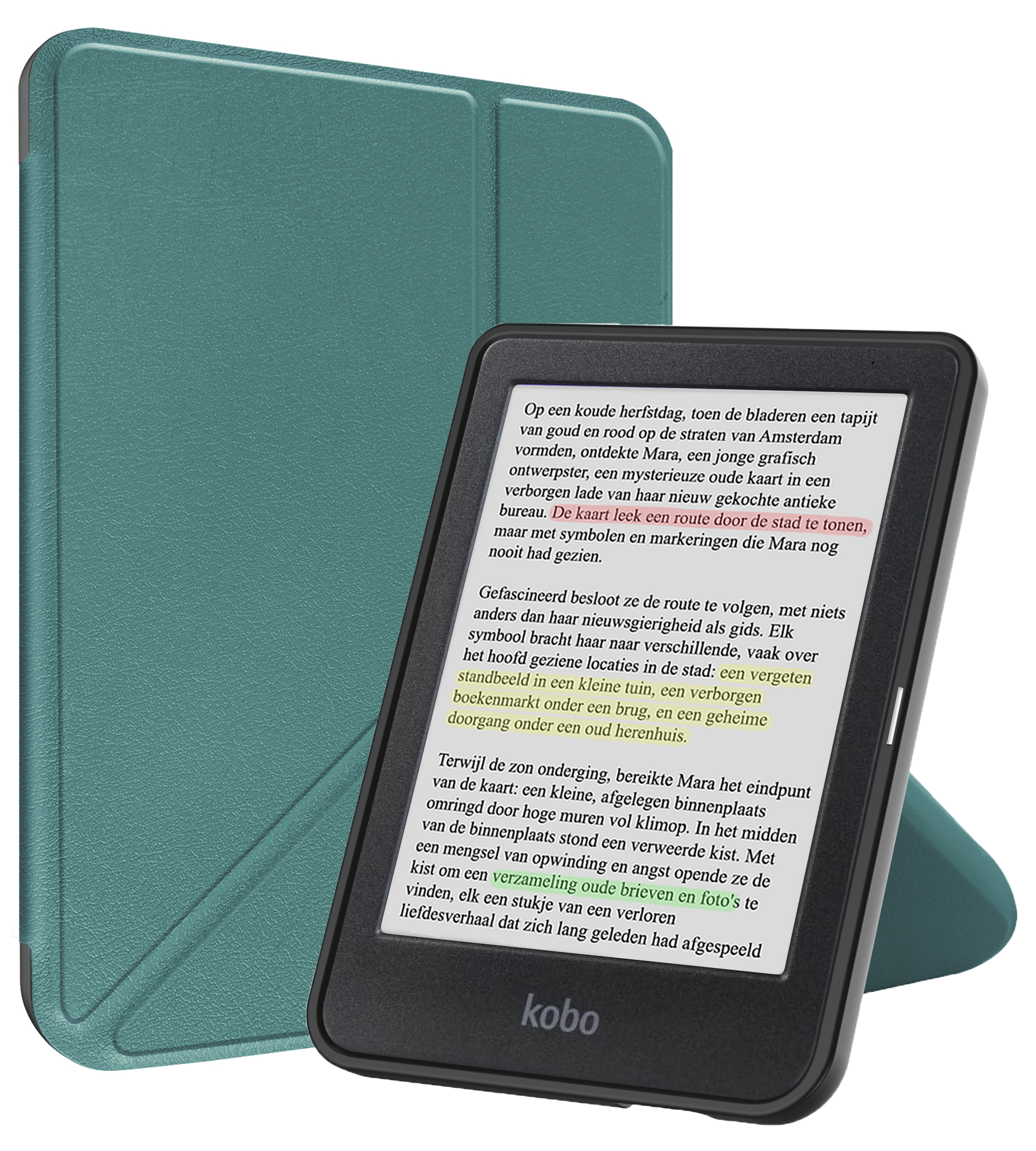 Maak je Kobo Clara Colour compleet met deze trifold e-reader hoes in donkergroene. **Bestel nu en geniet van comfortabele bescherming en stijl!**