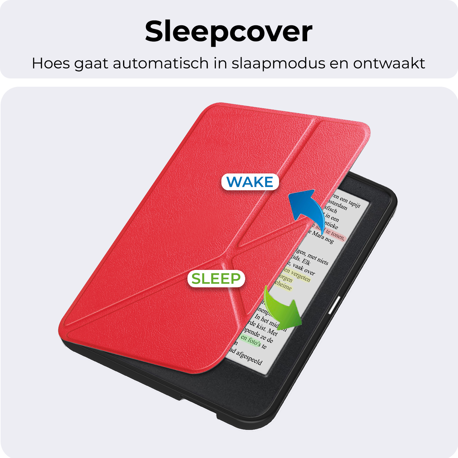 Maak je Kobo Clara Colour compleet met deze trifold e-reader hoes in rode. **Bestel nu en geniet van comfortabele bescherming en stijl!**