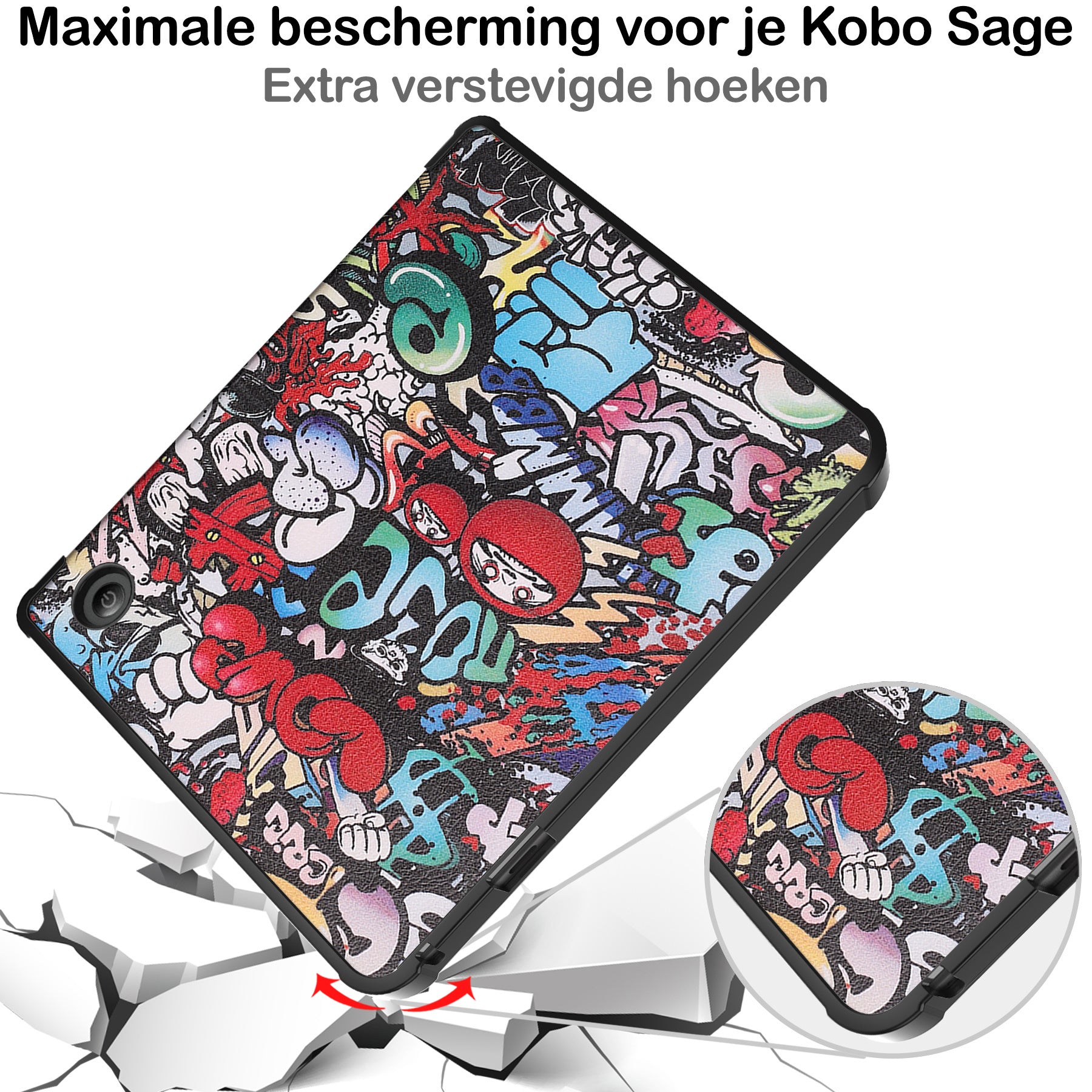 Maak je Kobo Libra 2 compleet met deze trifold e-reader hoes in graffity-patroon. **Bestel nu en geniet van comfortabele bescherming en stijl!**