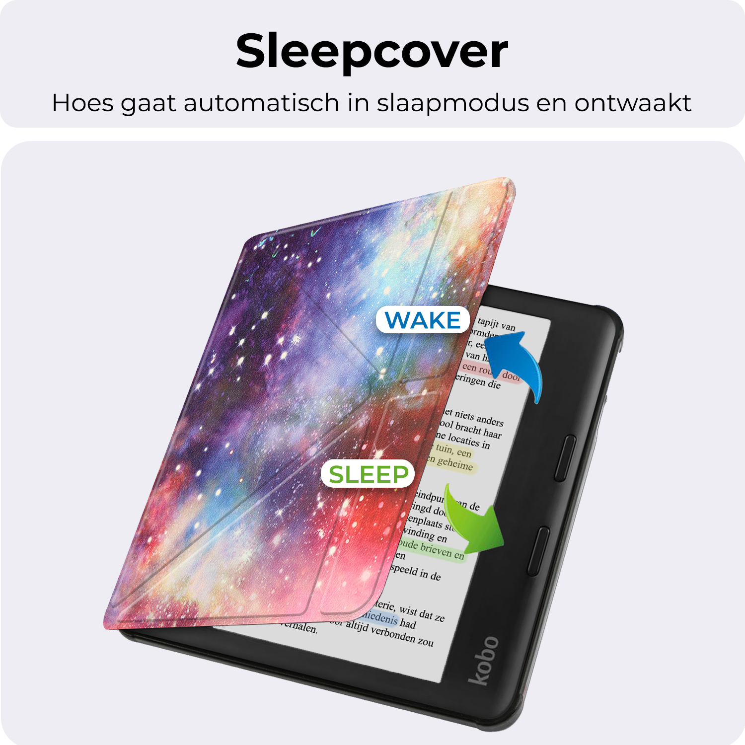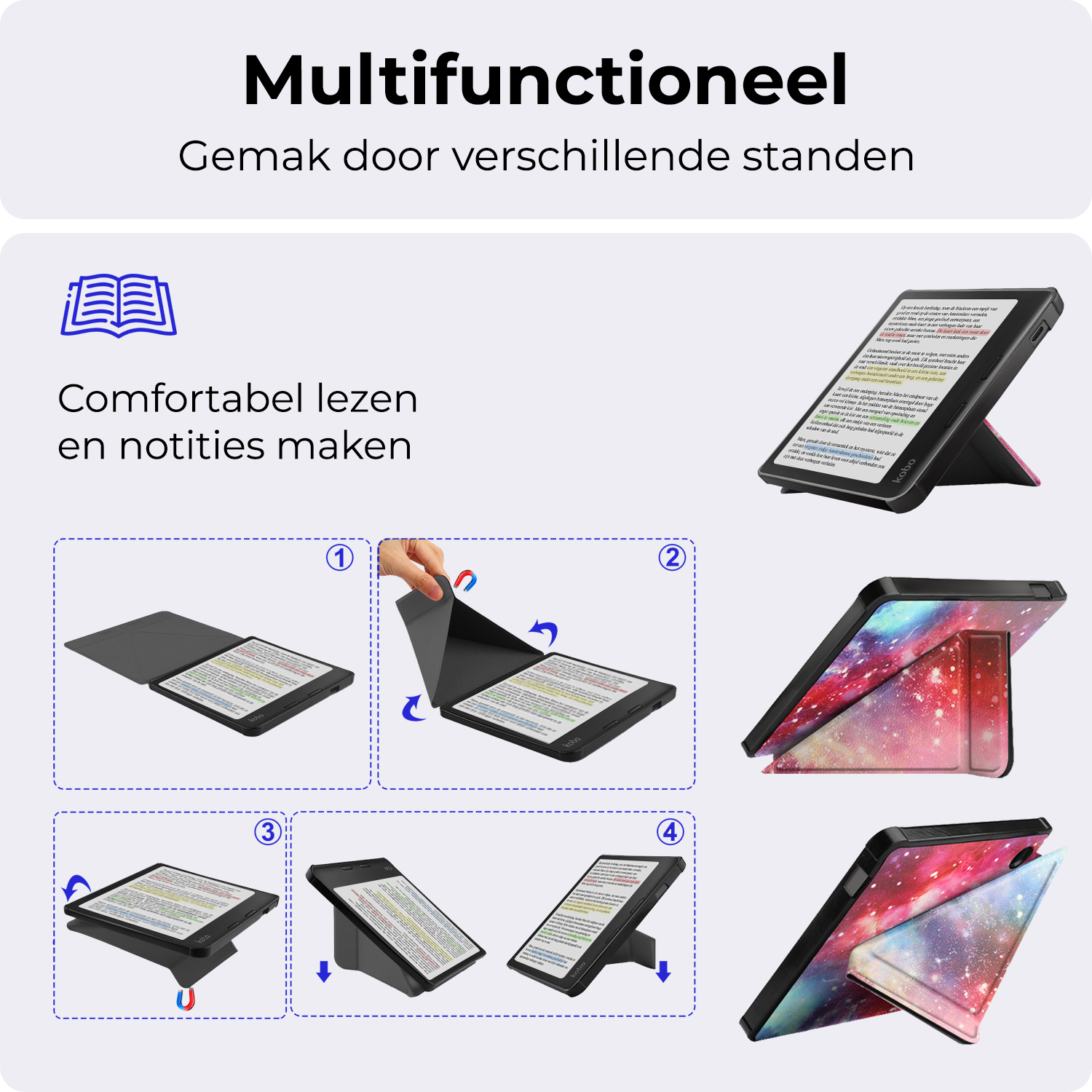 Maak je Kobo Libra Colour compleet met deze trifold e-reader hoes in galaxy-patroon. **Bestel nu en geniet van comfortabele bescherming en stijl!**