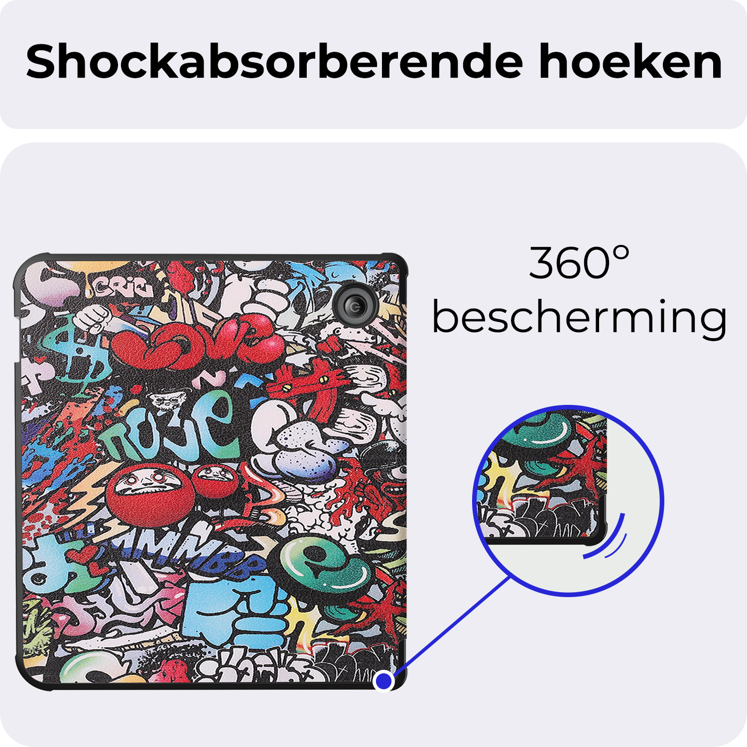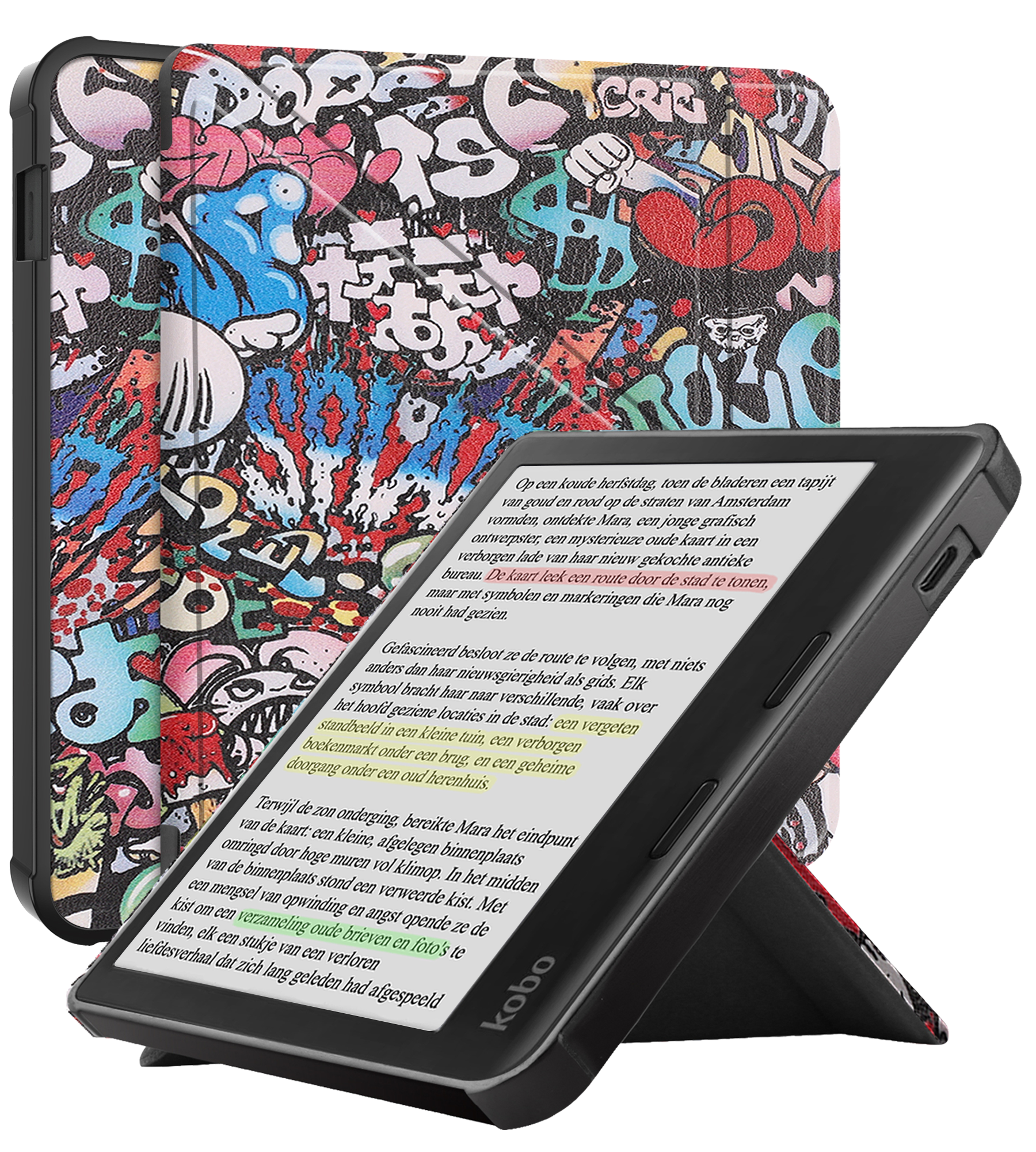 Maak je Kobo Libra Colour compleet met deze trifold e-reader hoes in graffity-patroon. **Bestel nu en geniet van comfortabele bescherming en stijl!**