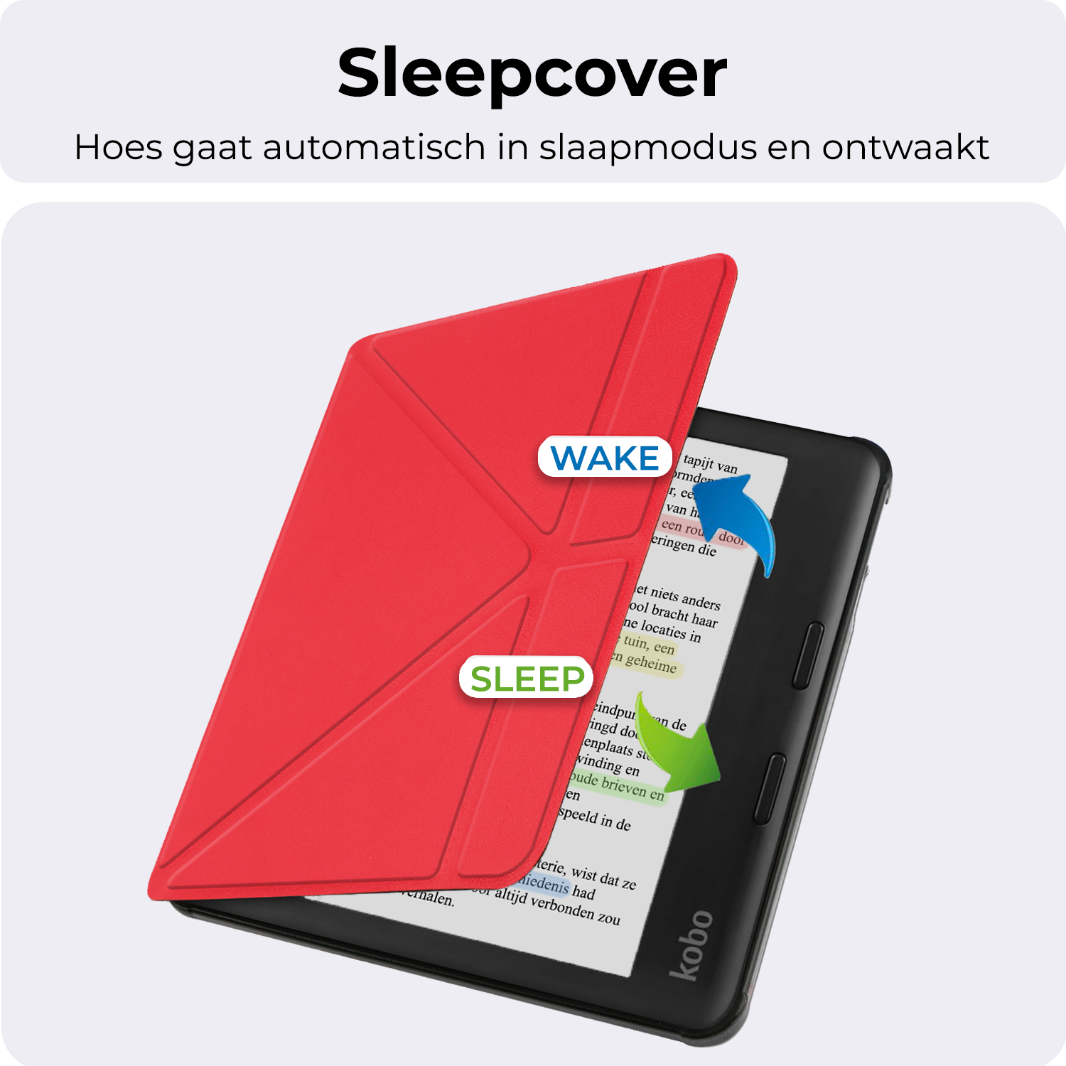 Maak je Kobo Libra Colour compleet met deze trifold e-reader hoes in rode. **Bestel nu en geniet van comfortabele bescherming en stijl!**