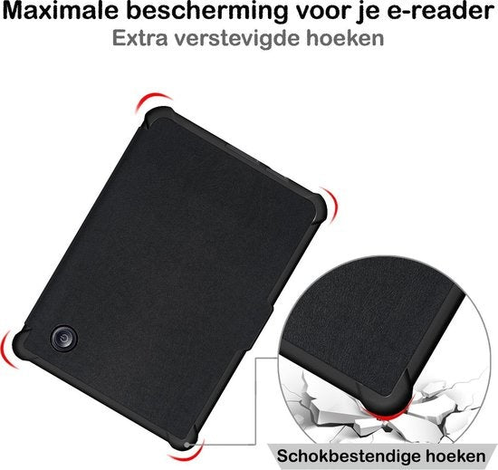 Maak je Kobo Libra H2O compleet met deze trifold e-reader hoes in zwarte. **Bestel nu en geniet van comfortabele bescherming en stijl!**