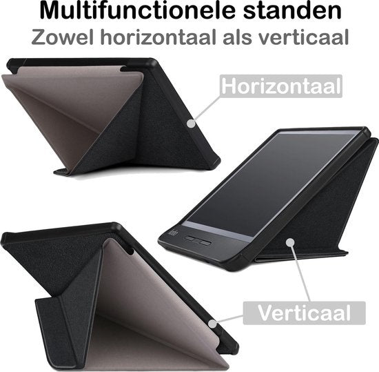 Het trifold design maakt het mogelijk om je e-reader in een stabiele stand te plaatsen. Dit zorgt voor een comfortabele leeservaring, of je nu aan tafel zit of in bed ligt.