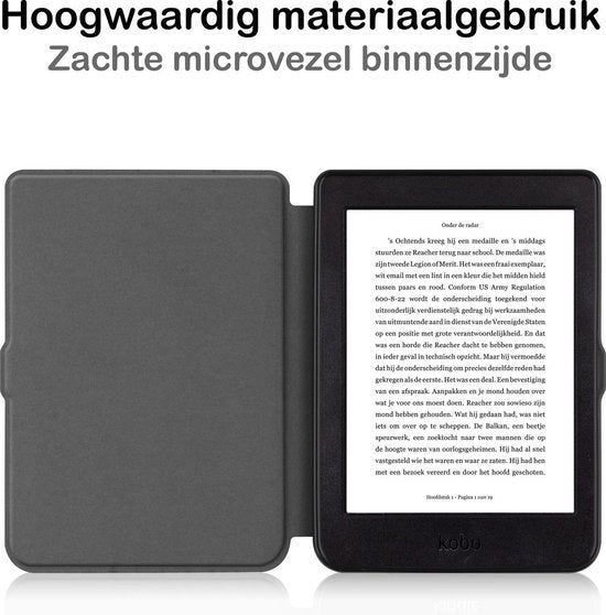 De hoes sluit stevig en beschermt je e-reader wanneer deze niet in gebruik is. Er is bewust gekozen voor een ontwerp zonder slaapfunctie, zodat je volledige controle houdt over het aan- en uitzetten van je e-reader.