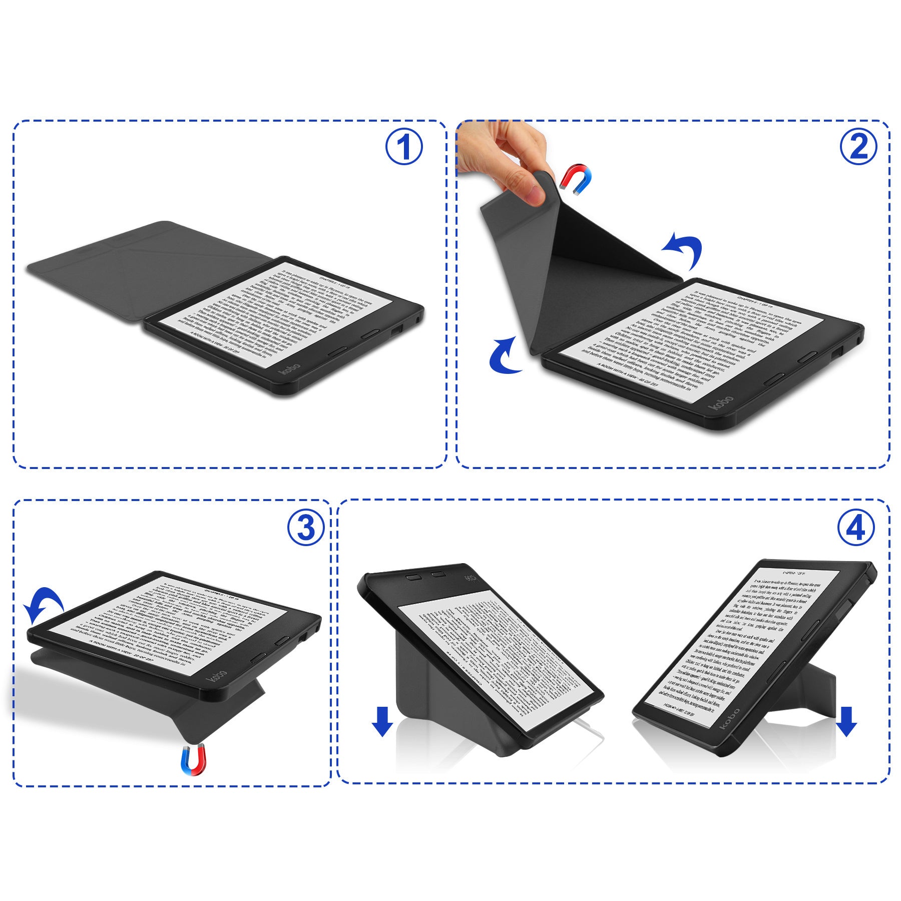 Het trifold design maakt het mogelijk om je e-reader in een stabiele stand te plaatsen. Dit zorgt voor een comfortabele leeservaring, of je nu aan tafel zit of in bed ligt.