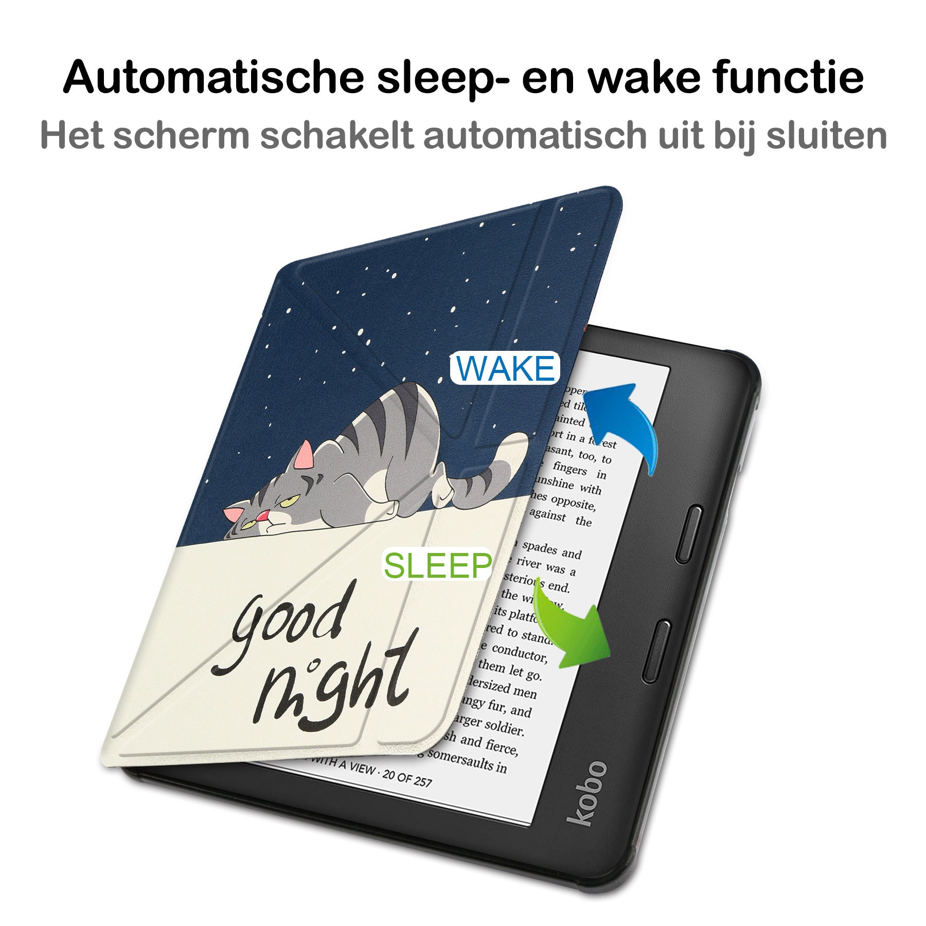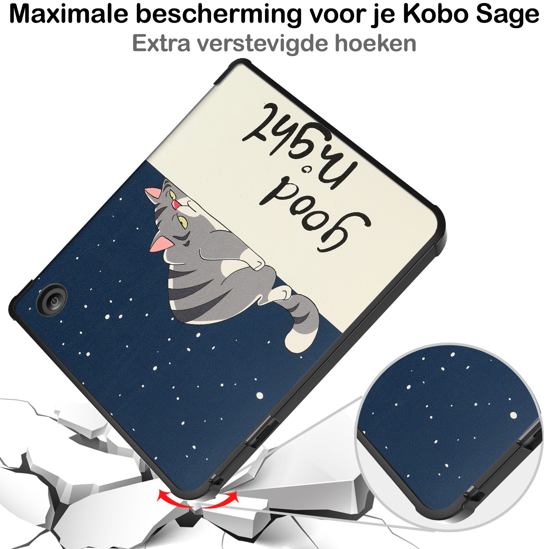 Maak je Kobo Sage compleet met deze trifold e-reader hoes in kat. **Bestel nu en geniet van comfortabele bescherming en stijl!**