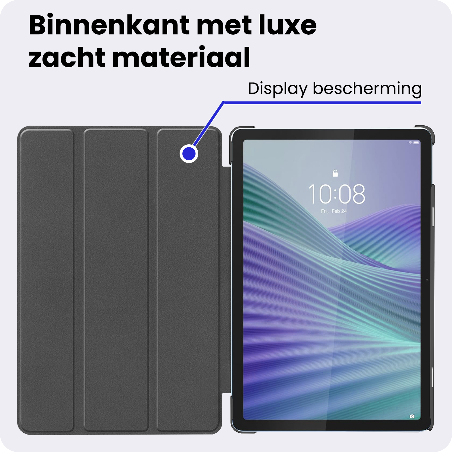 De stevige voorkant en achterkant van deze hoes beschermen je Lenovo Tab 10.1 tegen dagelijkse beschadigingen zoals krassen en stof. De zachte binnenvoering voorkomt krassen op het scherm.