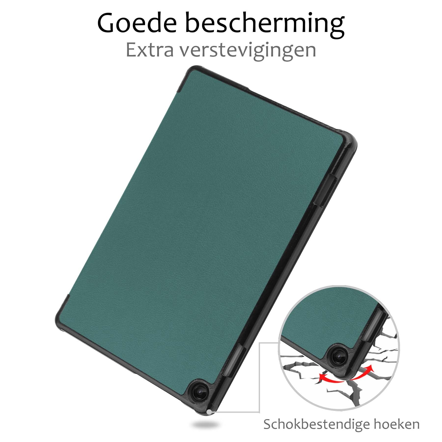 Maak je Lenovo Tab M10 (3rd gen) compleet met deze functionele en stijlvolle Trifold Bookcase Hoes - donkergroene. **Bestel nu en ervaar de perfecte balans tussen bescherming en gebruiksgemak!**