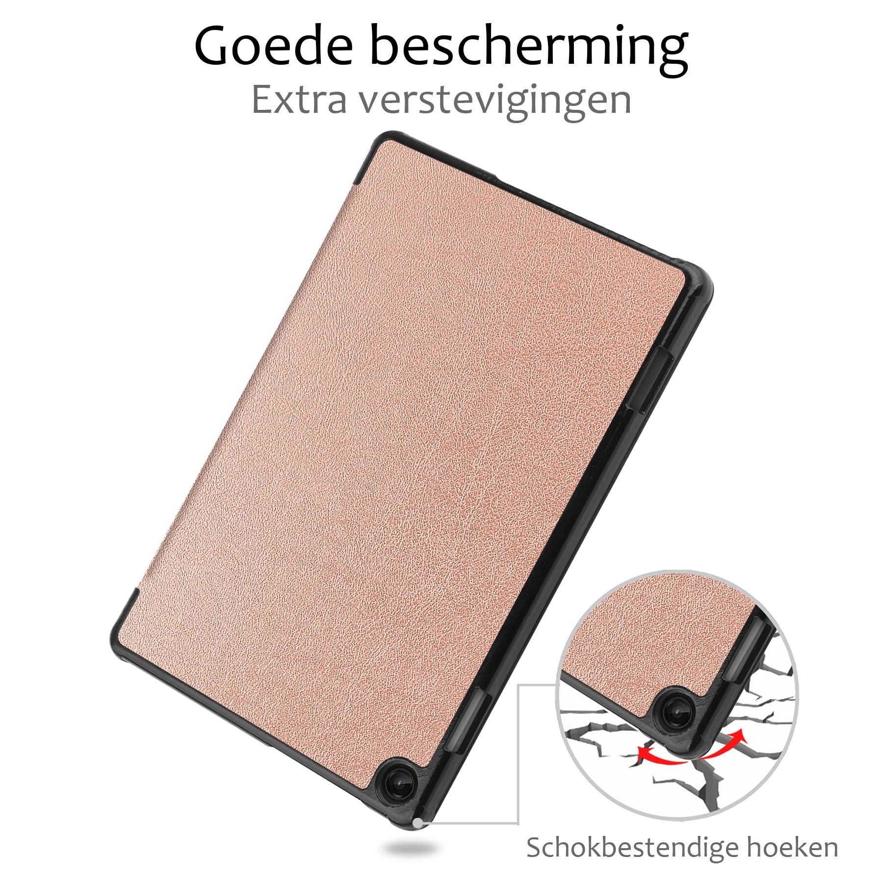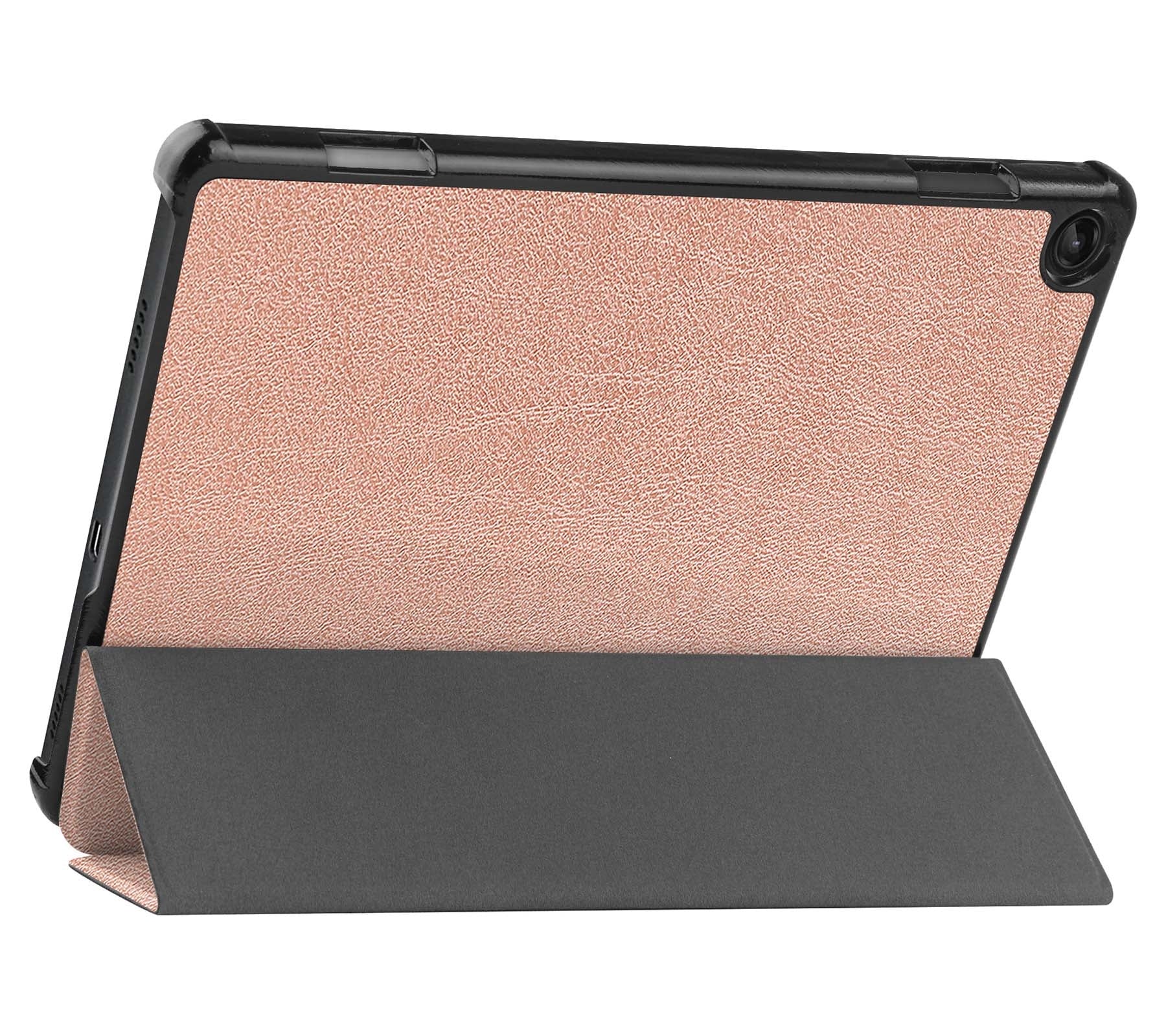 Maak je Lenovo Tab M10 (3rd gen) compleet met deze functionele en stijlvolle Trifold Bookcase Hoes - rosé gouden. **Bestel nu en ervaar de perfecte balans tussen bescherming en gebruiksgemak!**