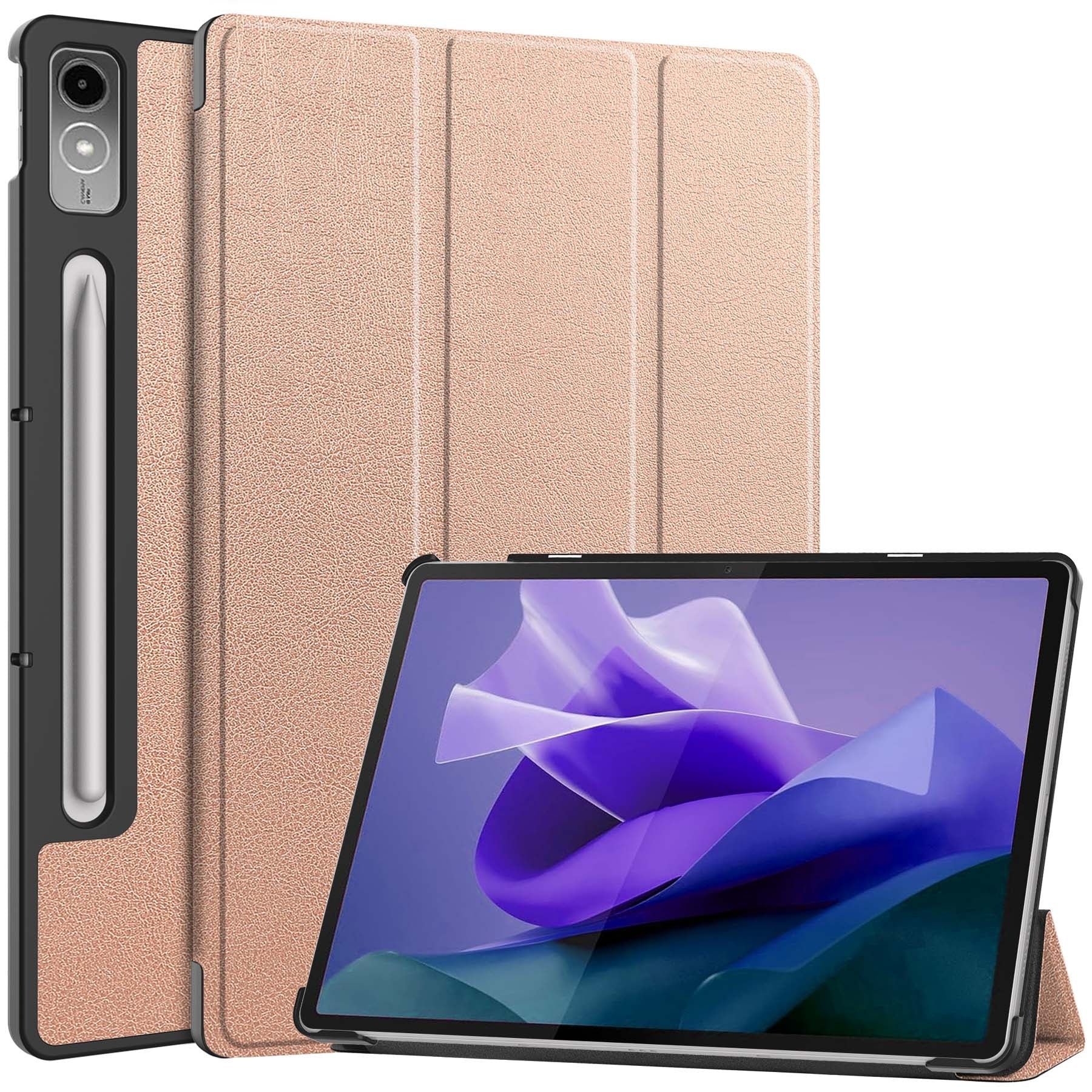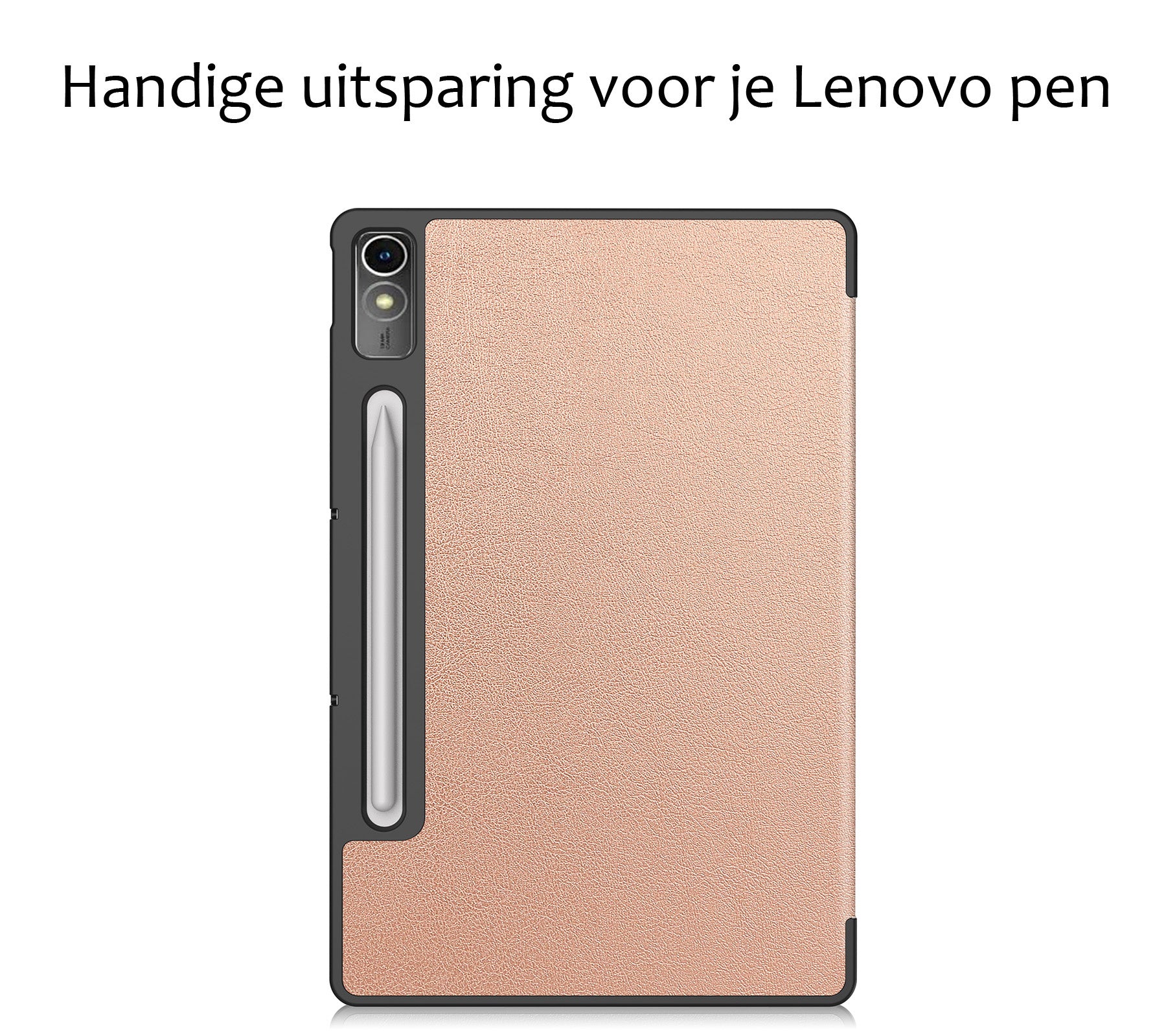 Lenovo Tab P12 Trifold Bookcase Hoes met Penhouder Lenovo Pen - Rosé goud