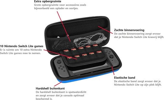 Of je nu onderweg bent of je Nintendo Switch Lite netjes wilt opbergen, deze hoes is de perfecte oplossing voor bescherming en gemak.