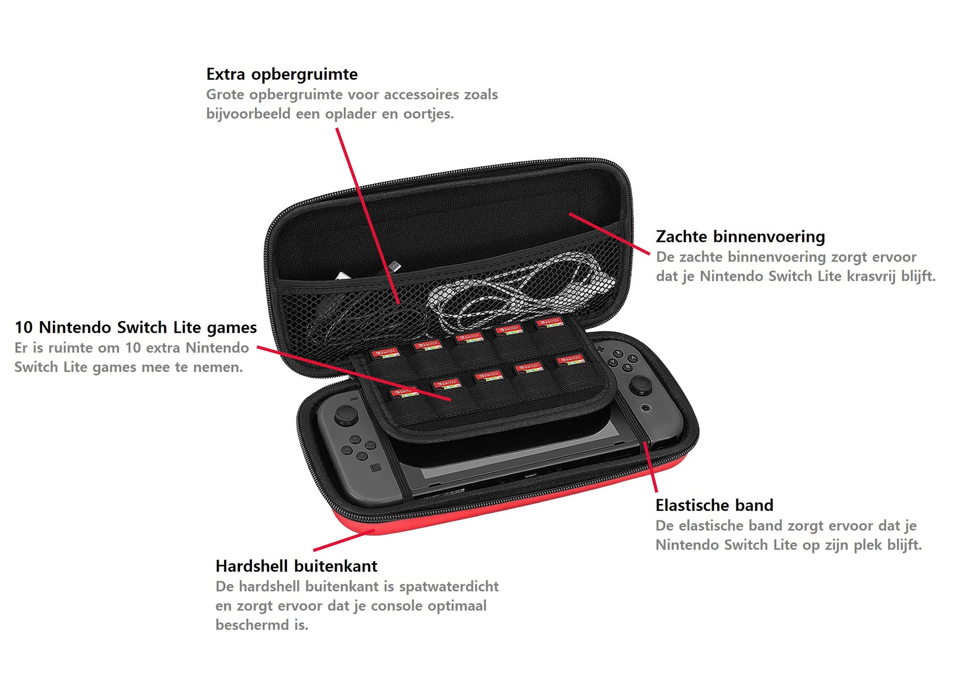 Of je nu onderweg bent of je Nintendo Switch Lite netjes wilt opbergen, deze hoes is de perfecte oplossing voor bescherming en gemak.