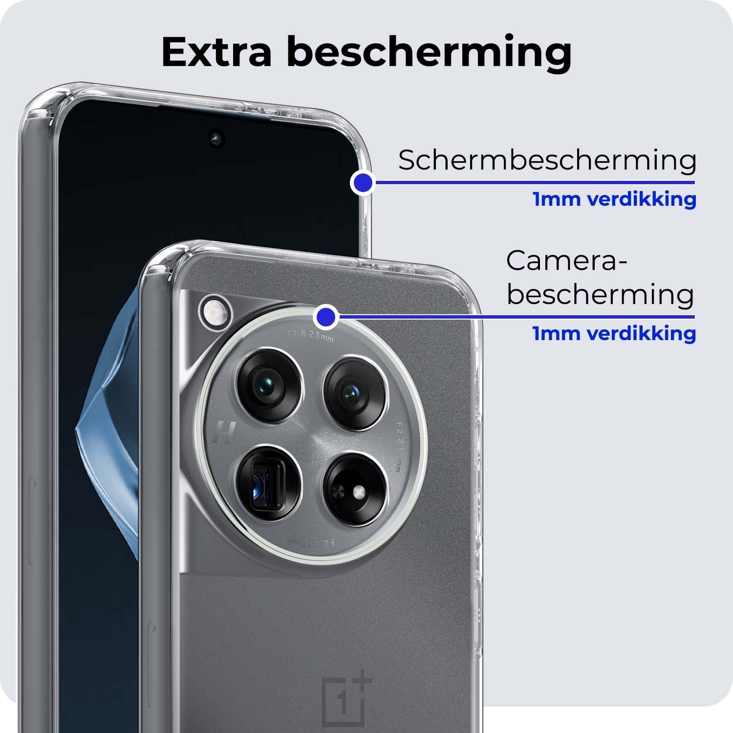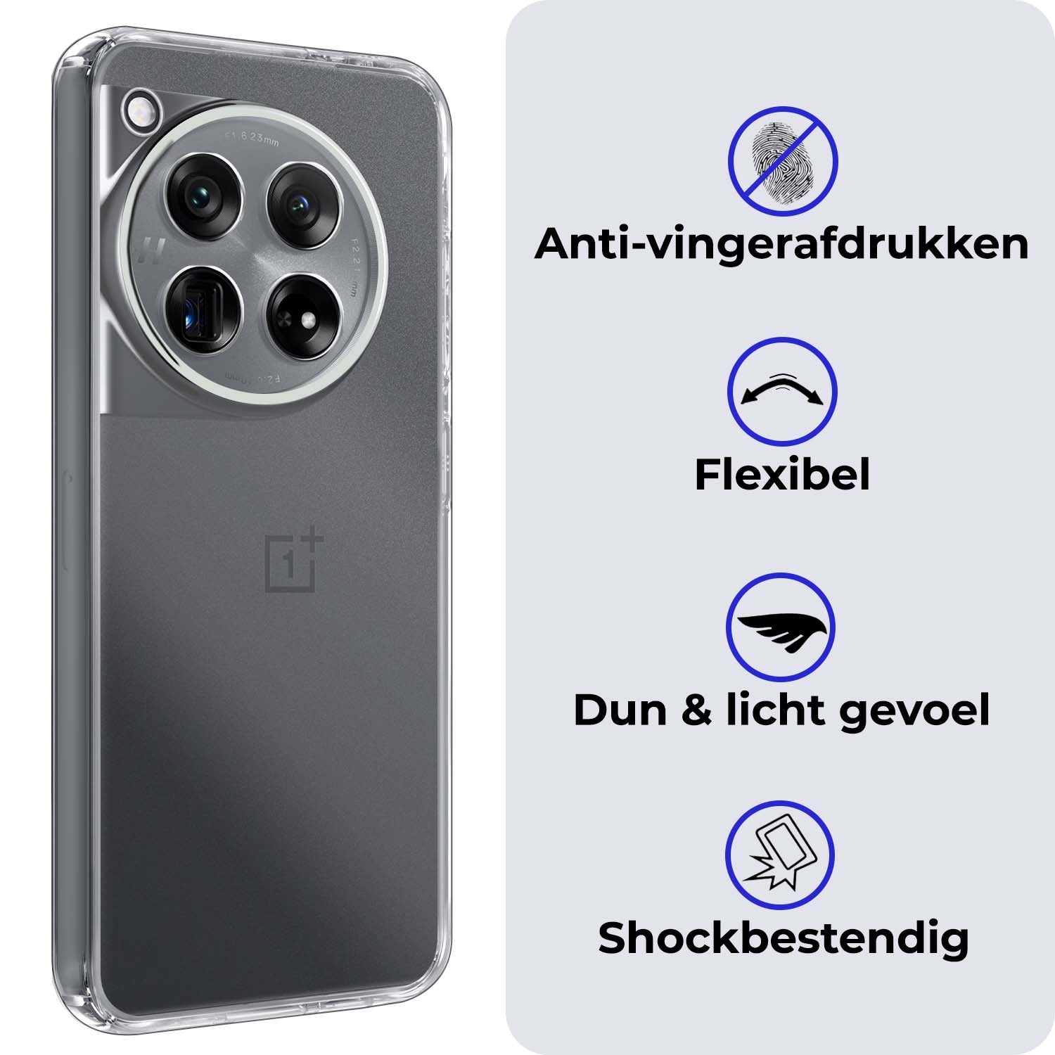 Dit hoesje is verkrijgbaar in verschillende kleuren, zodat je eenvoudig een stijl kiest die bij je past. Ga voor een neutrale tint voor een subtiele look of kies een opvallende kleur om je OnePlus 12 een persoonlijke touch te geven. Voor wie het originele design van de telefoon wil behouden, is er ook een transparante variant beschikbaar.