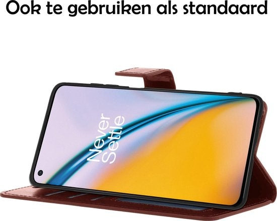 OnePlus Nord 2 Hoesje Bookcase Cover met Kaarthouder - Bruin