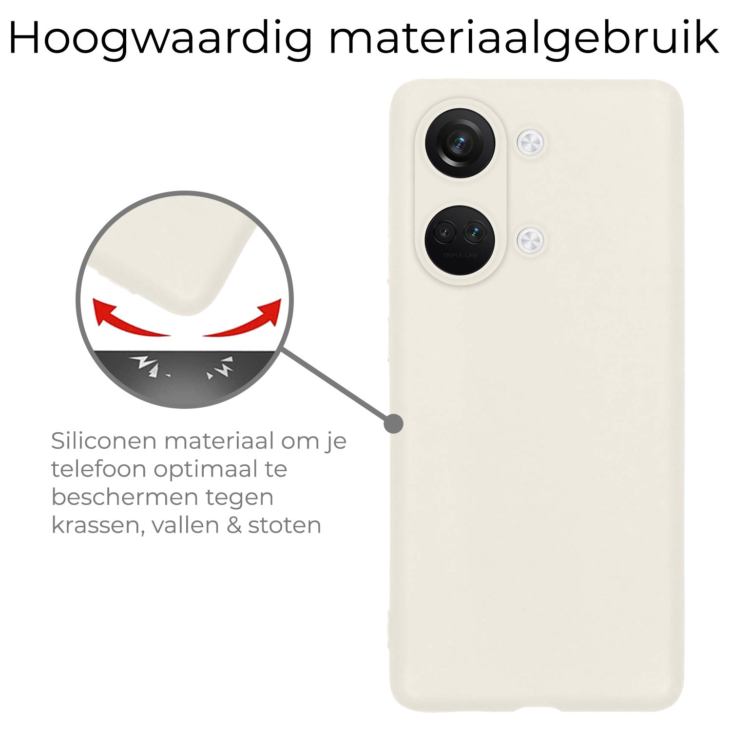 Dit siliconen hoesje voor de OnePlus Nord 3 is gemaakt van flexibel en schokabsorberend TPU-materiaal, waardoor het je toestel optimaal beschermt tegen vallen en stoten. De verhoogde randen rond het scherm en de camera voorkomen directe contactschade bij neerleggen op vlakke oppervlakken. Bovendien is het siliconen materiaal scheur- en slijtvast, wat een lange levensduur garandeert.