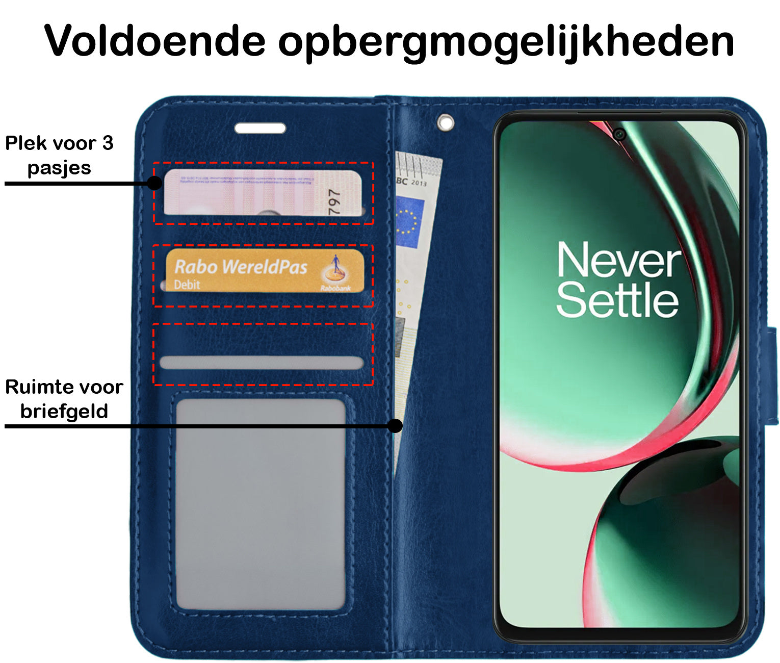 OnePlus Nord CE 3 Lite Hoesje Bookcase Cover met Kaarthouder - Donkerblauw
