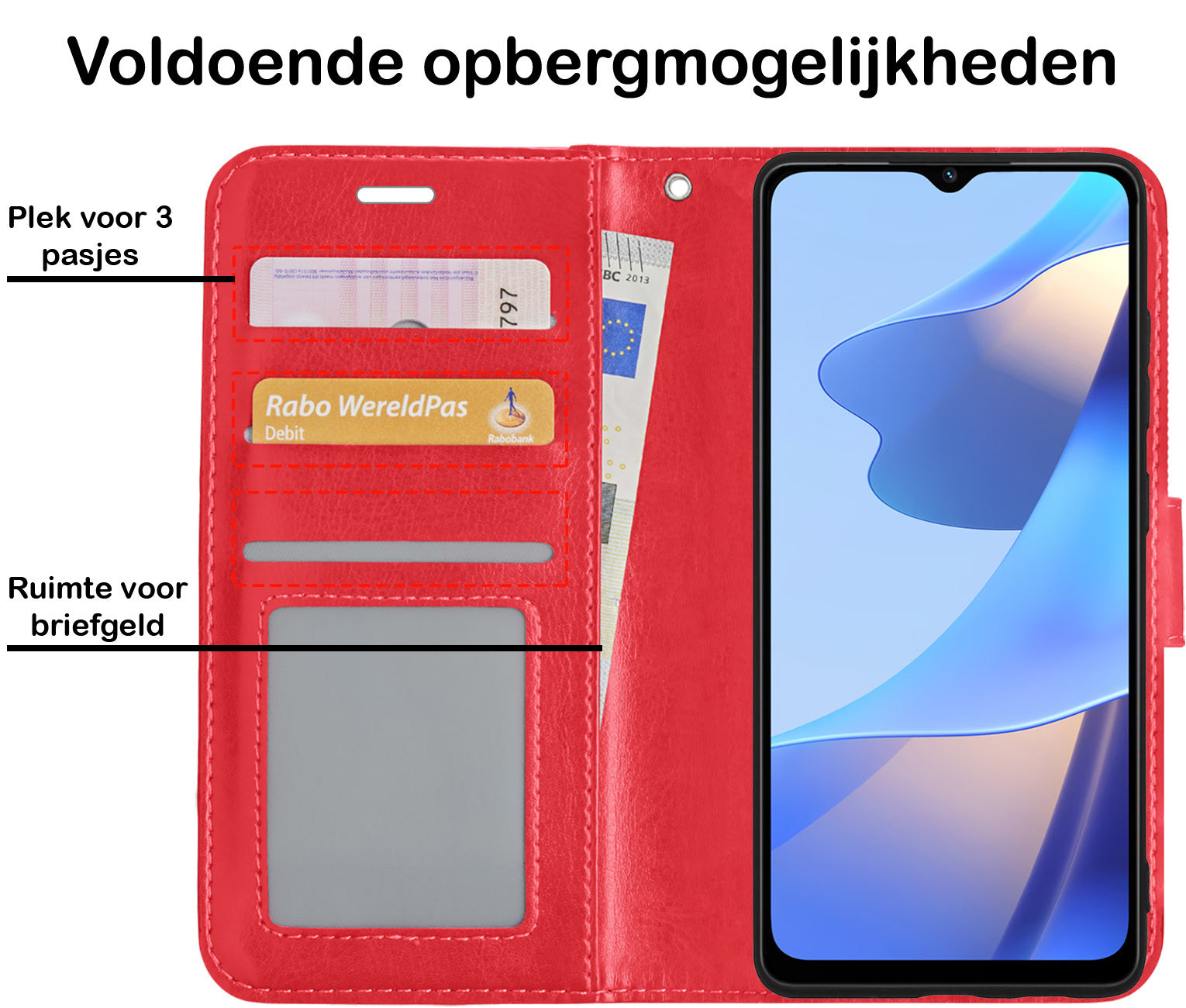 OPPO A16s Hoesje Bookcase Cover met Kaarthouder - Rood