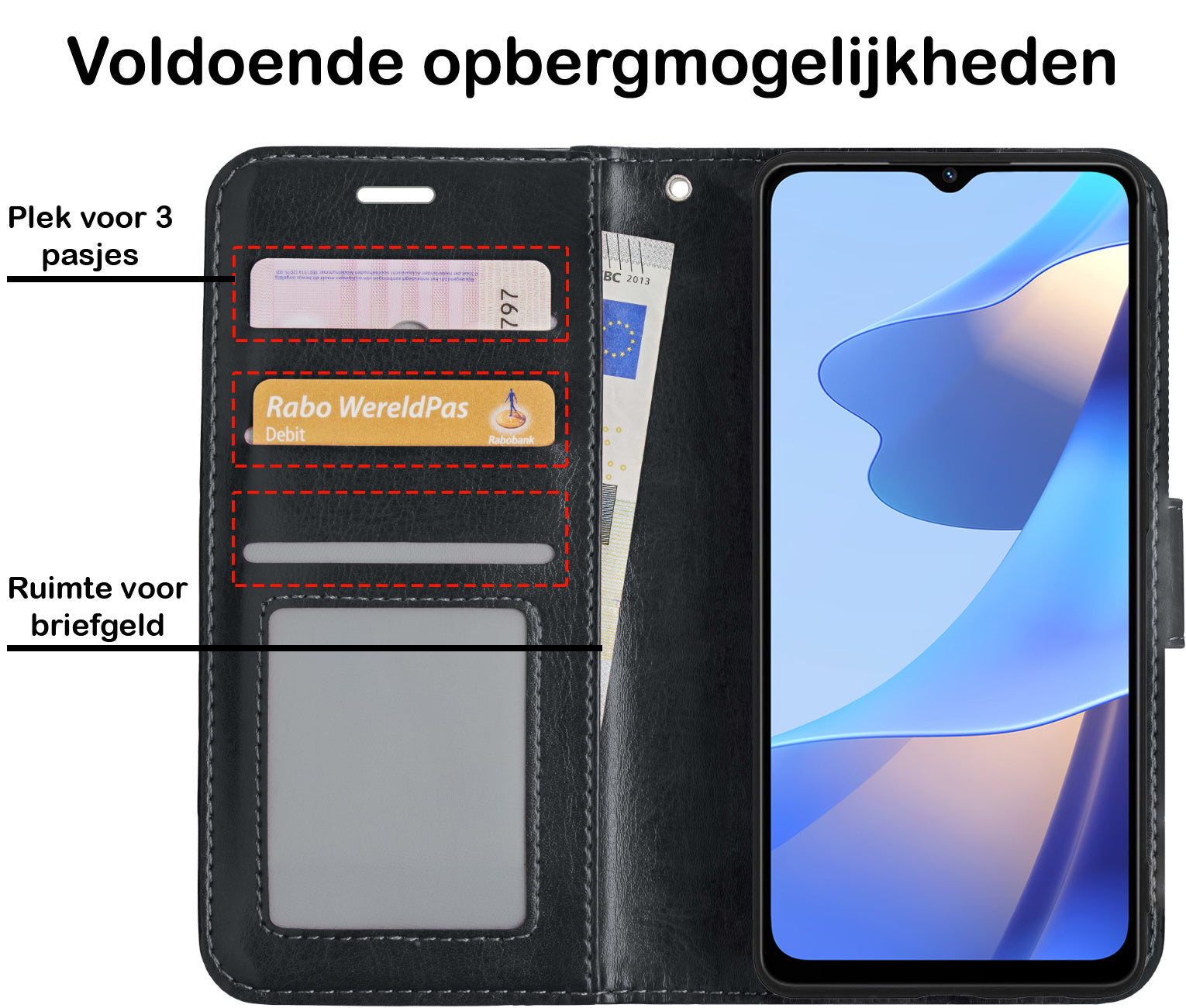 OPPO A16s Hoesje Bookcase Cover met Kaarthouder - Zwart