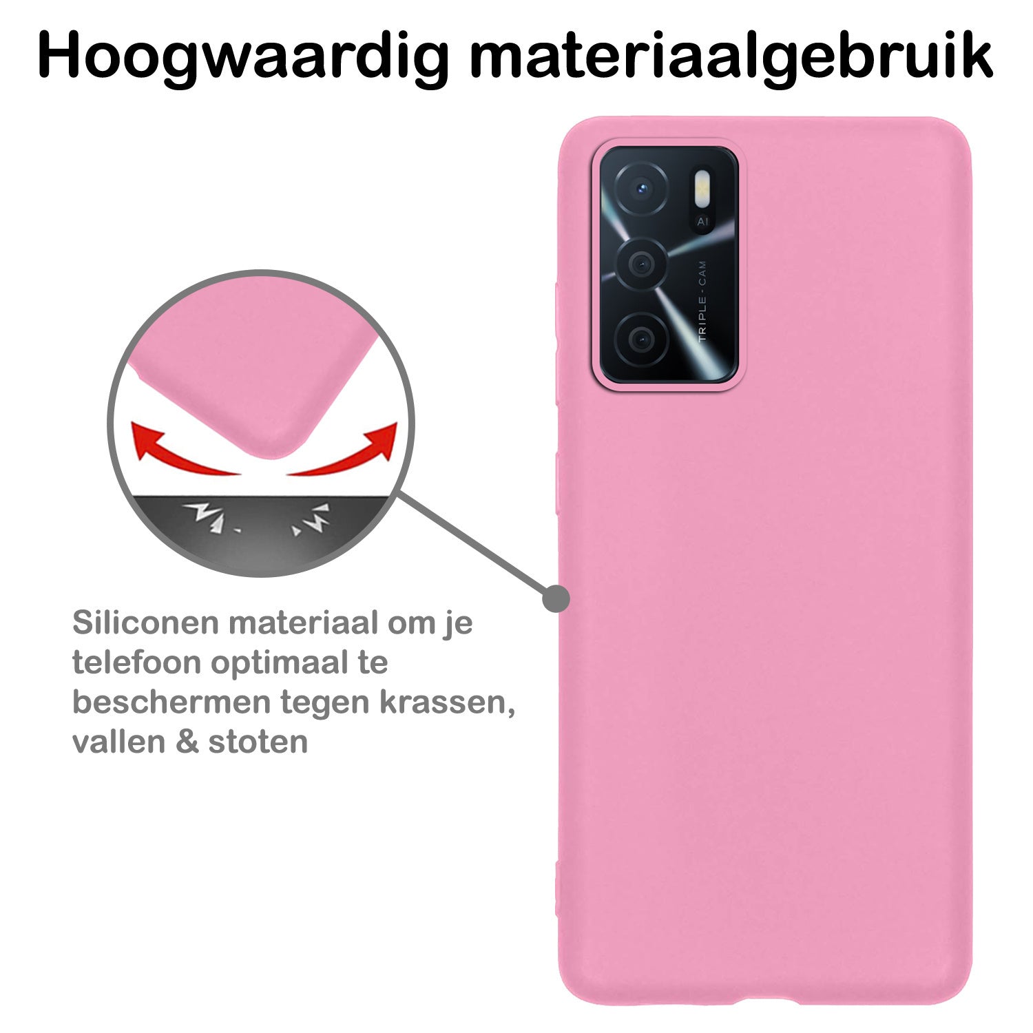 Dit siliconen hoesje voor de OPPO A16s is gemaakt van flexibel en schokabsorberend TPU-materiaal, waardoor het je toestel optimaal beschermt tegen vallen en stoten. De verhoogde randen rond het scherm en de camera voorkomen directe contactschade bij neerleggen op vlakke oppervlakken. Bovendien is het siliconen materiaal scheur- en slijtvast, wat een lange levensduur garandeert.