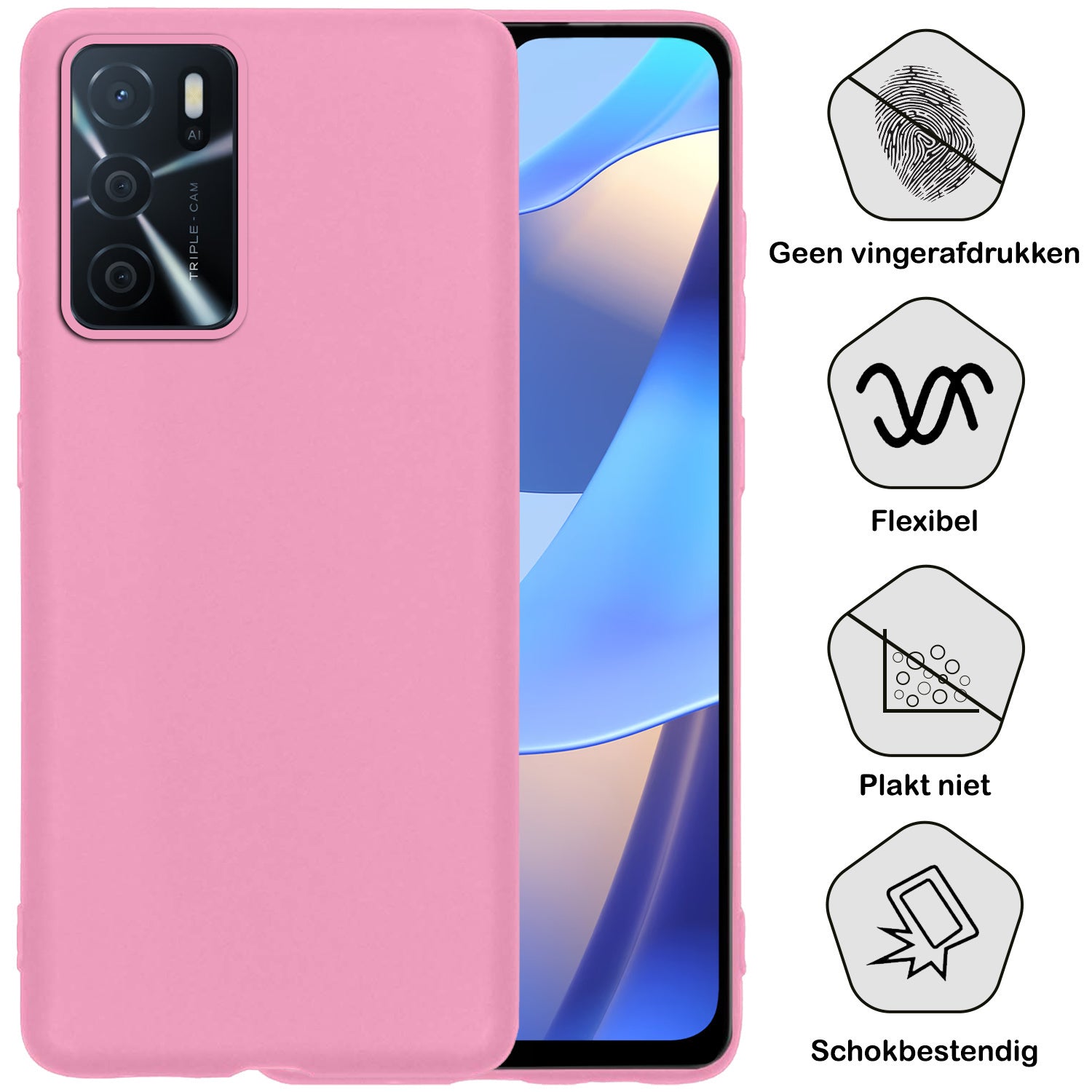 OPPO A16s Hoesje Siliconen Backcover Lichtgewicht - Lichtroze