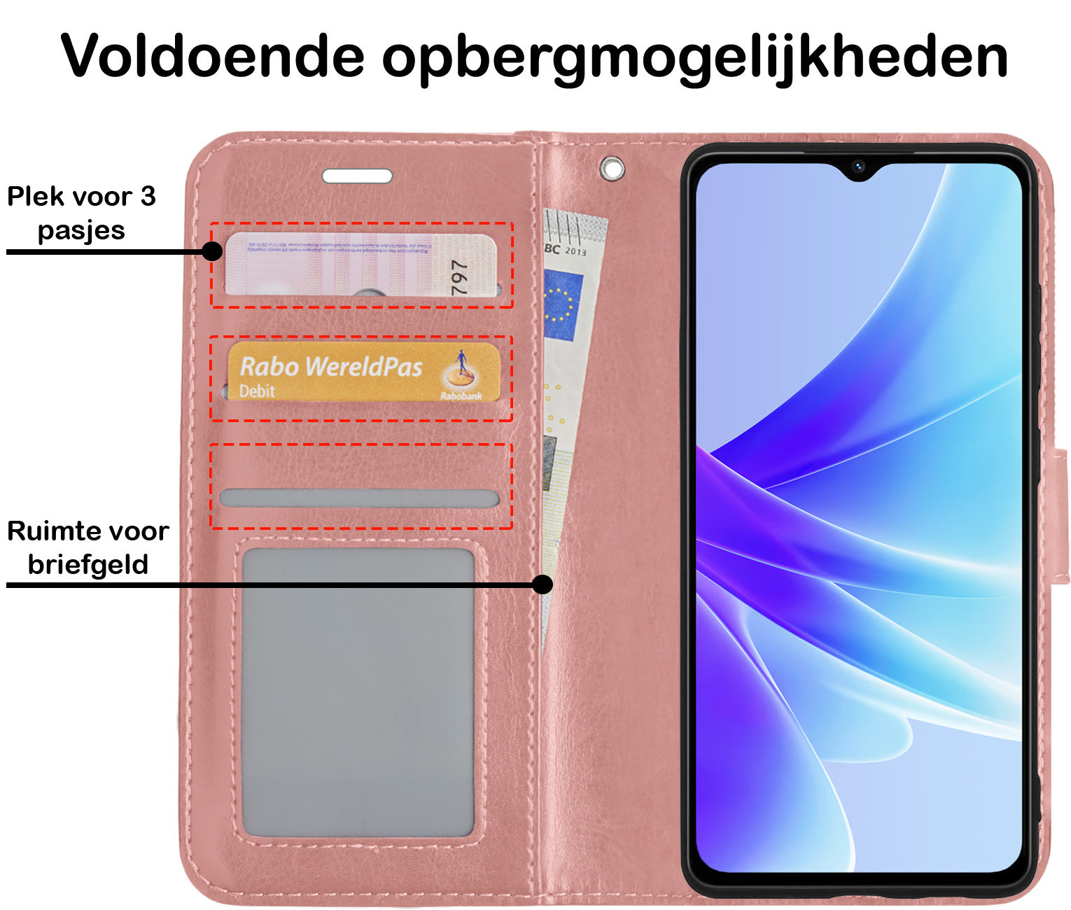 - Ruimte voor pasjes en briefgeld