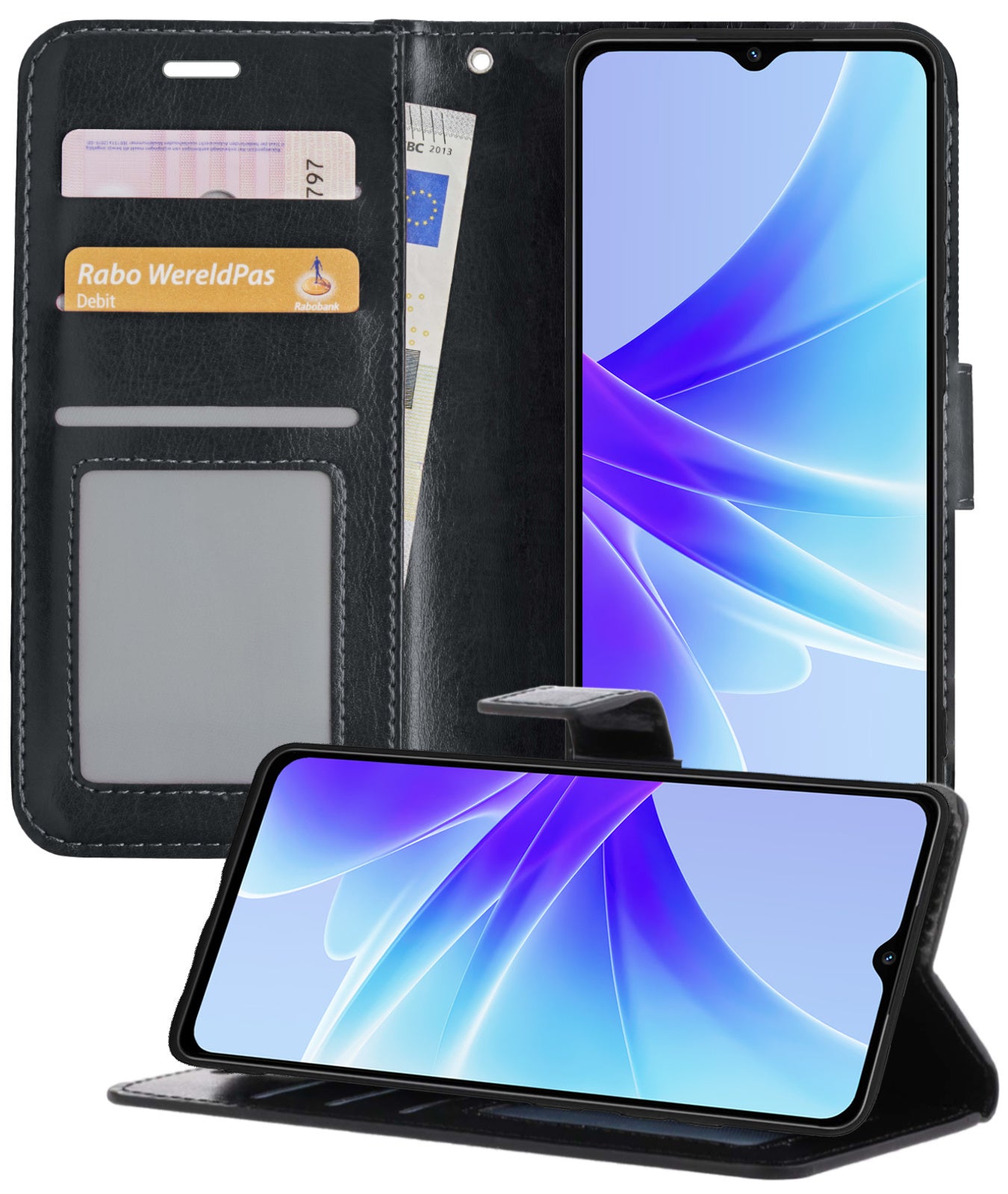 OPPO A17 Hoesje Bookcase Cover met Kaarthouder - Zwart