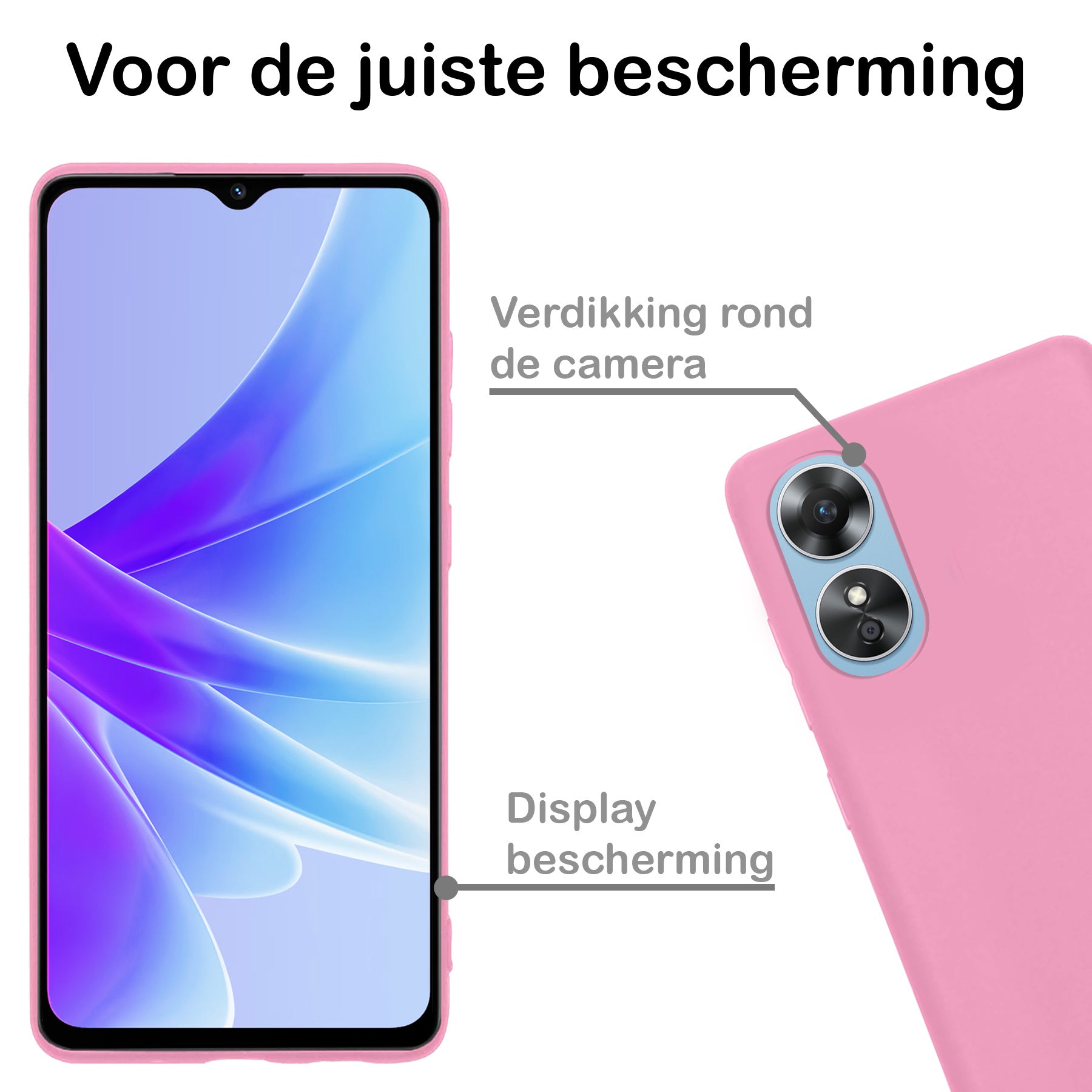 Dit hoesje is verkrijgbaar in verschillende kleuren, zodat je eenvoudig een stijl kiest die bij je past. Ga voor een neutrale tint voor een subtiele look of kies een opvallende kleur om je OPPO A17 een persoonlijke touch te geven. Voor wie het originele design van de telefoon wil behouden, is er ook een transparante variant beschikbaar.