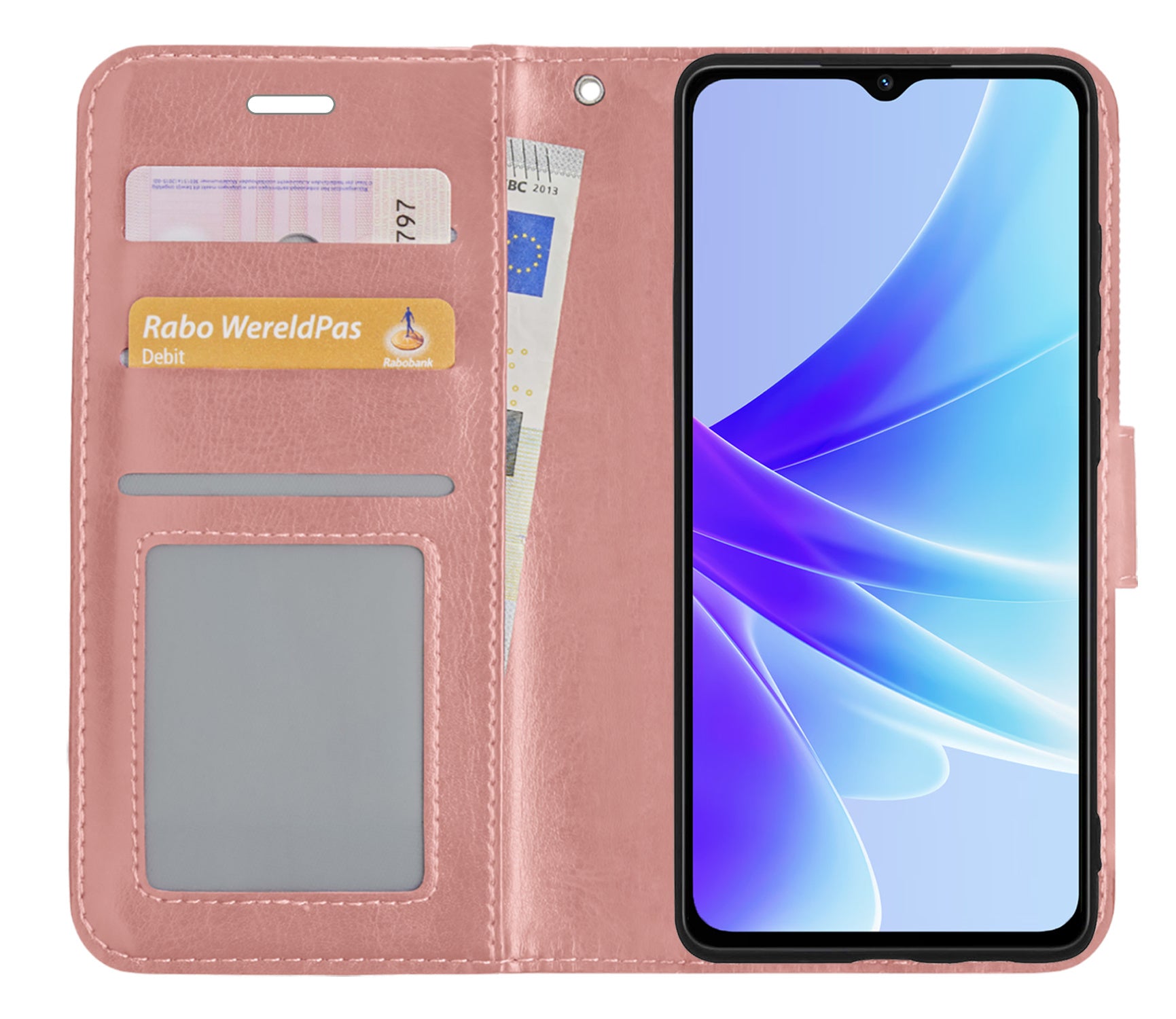 OPPO A57 Hoesje Bookcase Cover met Kaarthouder - Rosé goud