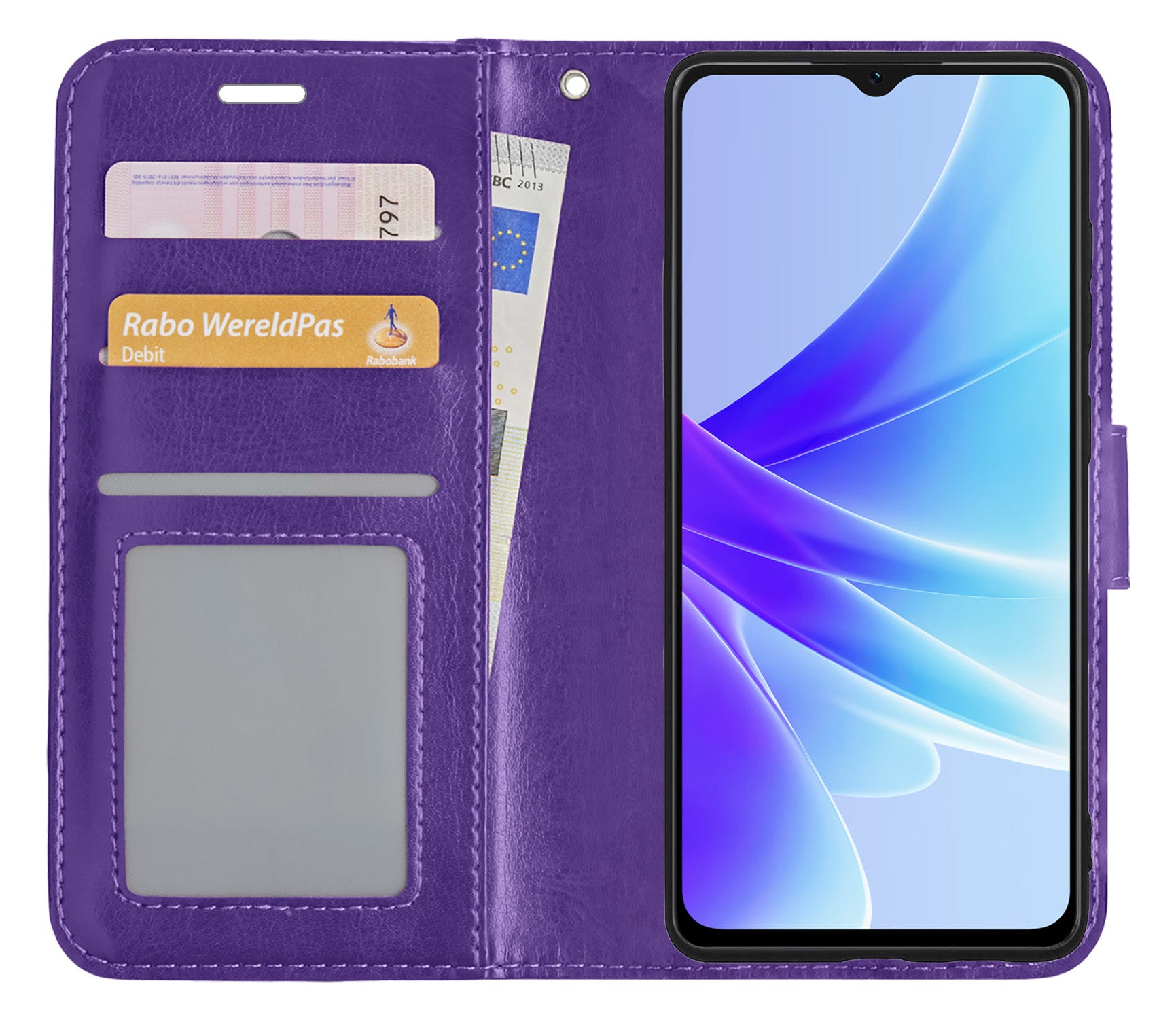 OPPO A57s Hoesje Bookcase Cover met Kaarthouder - Paars