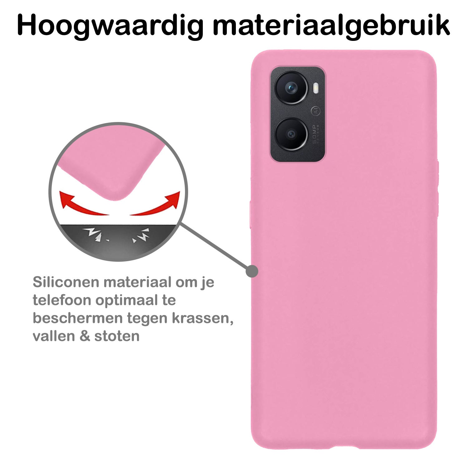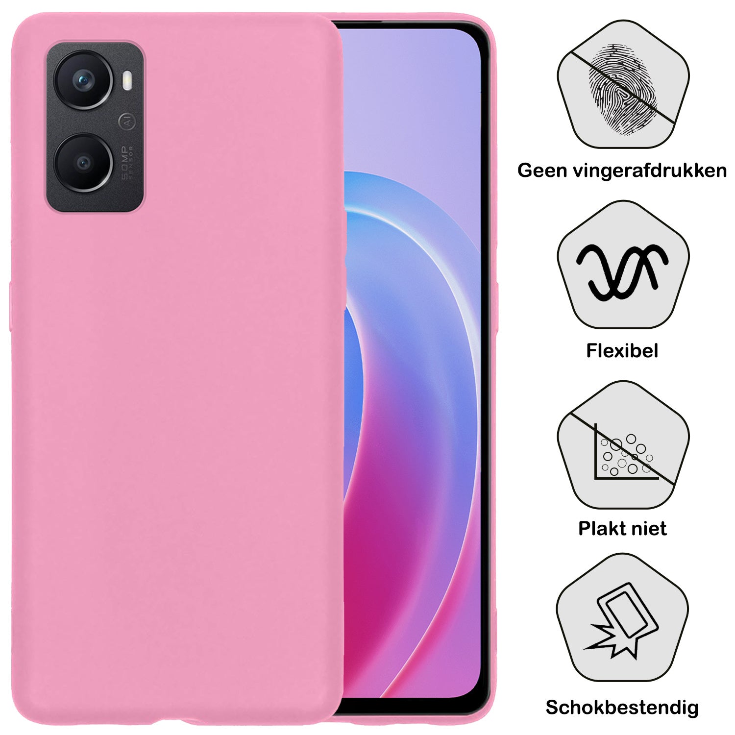 Dit siliconen hoesje voor de OPPO A76 is gemaakt van flexibel en schokabsorberend TPU-materiaal, waardoor het je toestel optimaal beschermt tegen vallen en stoten. De verhoogde randen rond het scherm en de camera voorkomen directe contactschade bij neerleggen op vlakke oppervlakken. Bovendien is het siliconen materiaal scheur- en slijtvast, wat een lange levensduur garandeert.