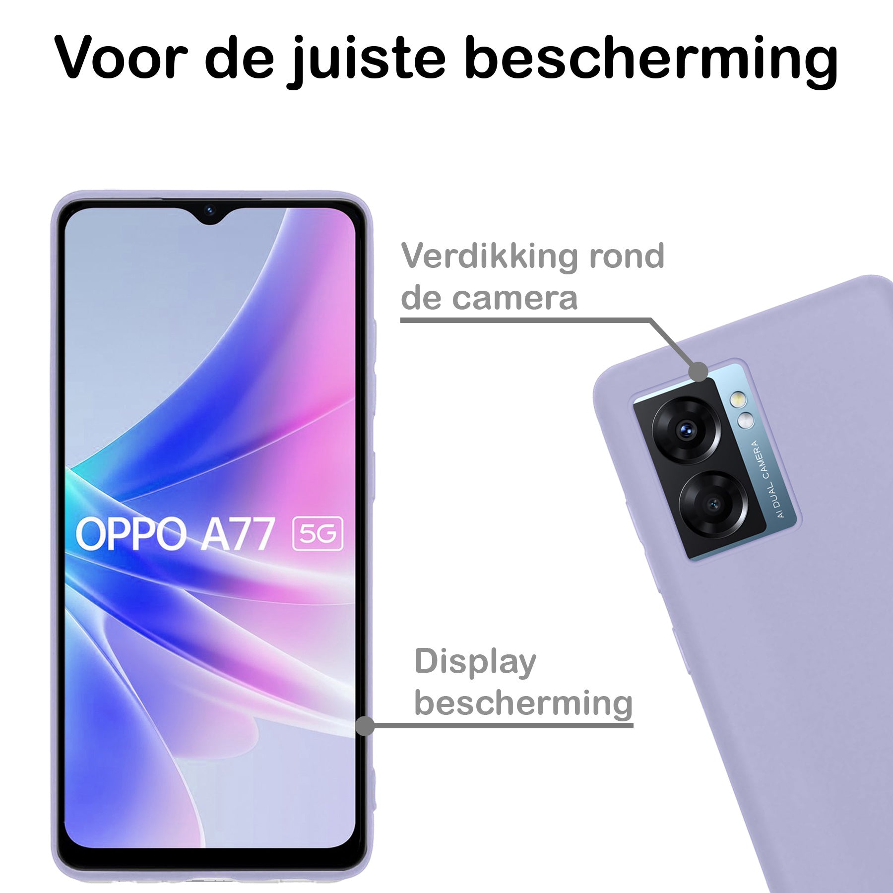 Dit hoesje is verkrijgbaar in verschillende kleuren, zodat je eenvoudig een stijl kiest die bij je past. Ga voor een neutrale tint voor een subtiele look of kies een opvallende kleur om je OPPO A77 een persoonlijke touch te geven. Voor wie het originele design van de telefoon wil behouden, is er ook een transparante variant beschikbaar.