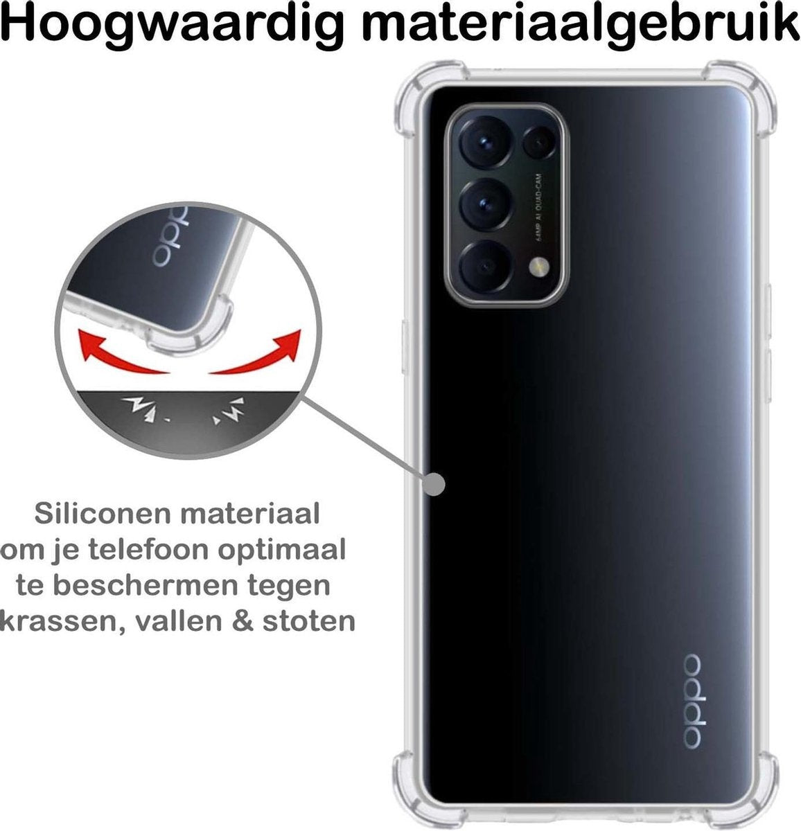 Dit shockproof hoesje is gemaakt van een combinatie van hoogwaardige materialen, waaronder een schokabsorberende TPU-laag en een stevige buitenkant voor extra duurzaamheid. De verstevigde hoeken absorberen impact bij een val, terwijl de verhoogde randen rondom het scherm en de camera krassen en schade voorkomen. Je OPPO Find X3 Lite blijft veilig, ongeacht de situatie.